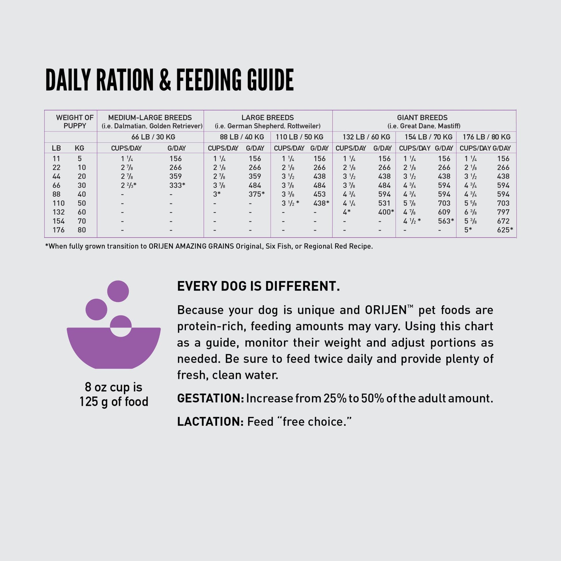 ORIJEN Amazing Grains High Protein Dry Dog Food Puppy Large Breed Recipe 22.5lb Bag