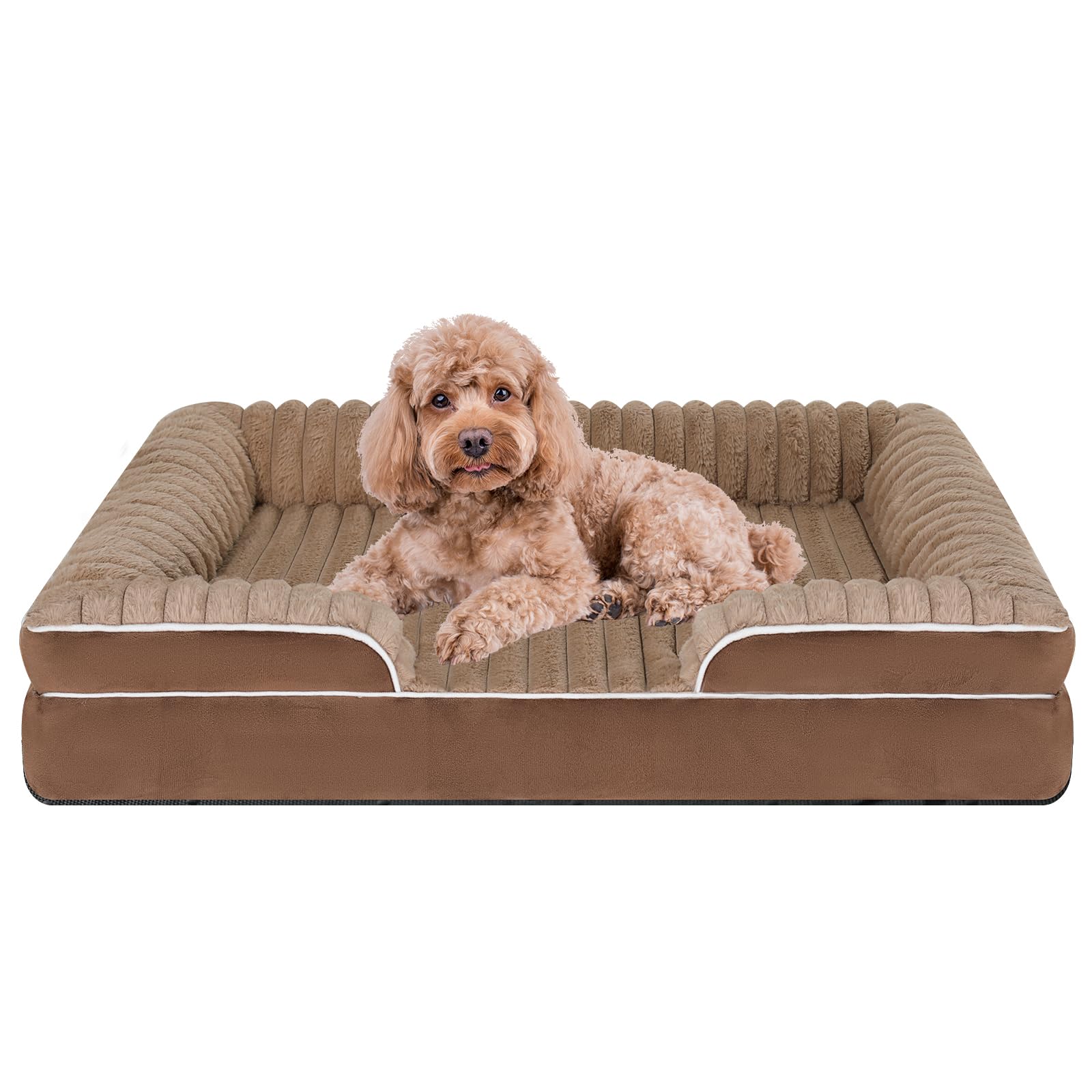 Orthopedic Dog Bed for Large Medium Sized, Washable Memory Foam Large Dog Bed Premium Soft Corduroy Fleece, Durable Medium Pet Sofa with Removable Cover, Washable Waterproof Pet Couch Beds(Brown,L)