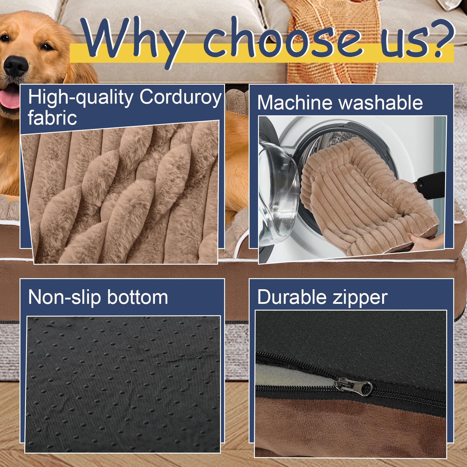 Orthopedic Dog Bed for Large Medium Sized, Washable Memory Foam Large Dog Bed Premium Soft Corduroy Fleece, Durable Medium Pet Sofa with Removable Cover, Washable Waterproof Pet Couch Beds(Brown,XL)