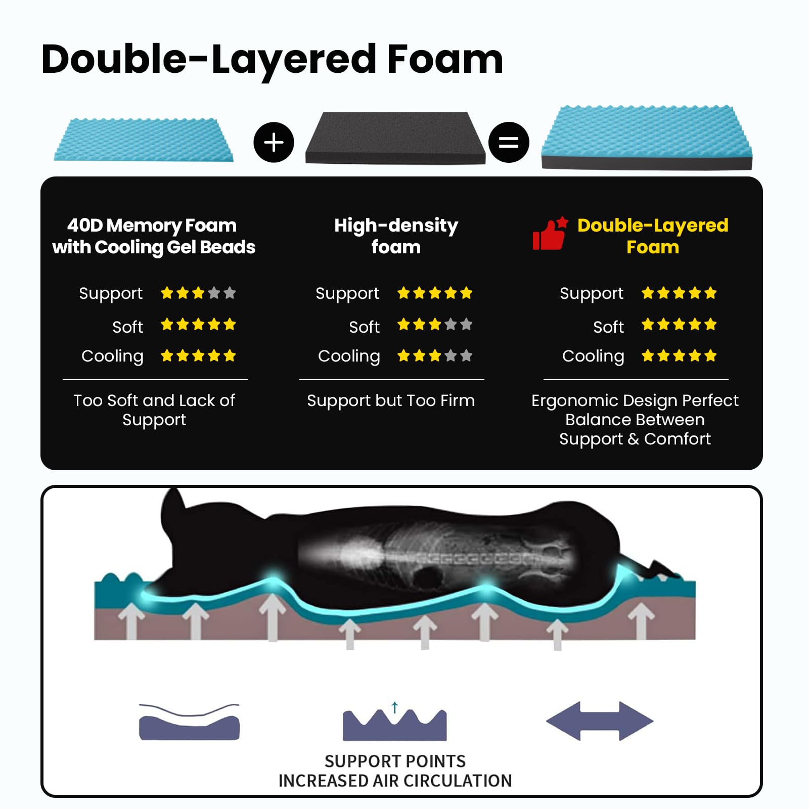 - 2 Layer of Covers: The orthopedic dog bed with washable short plush cover. Middle layer waterproof fabric prevent urine penetration and keep the foam clean and prolong the service life of the memory foam dog bed.