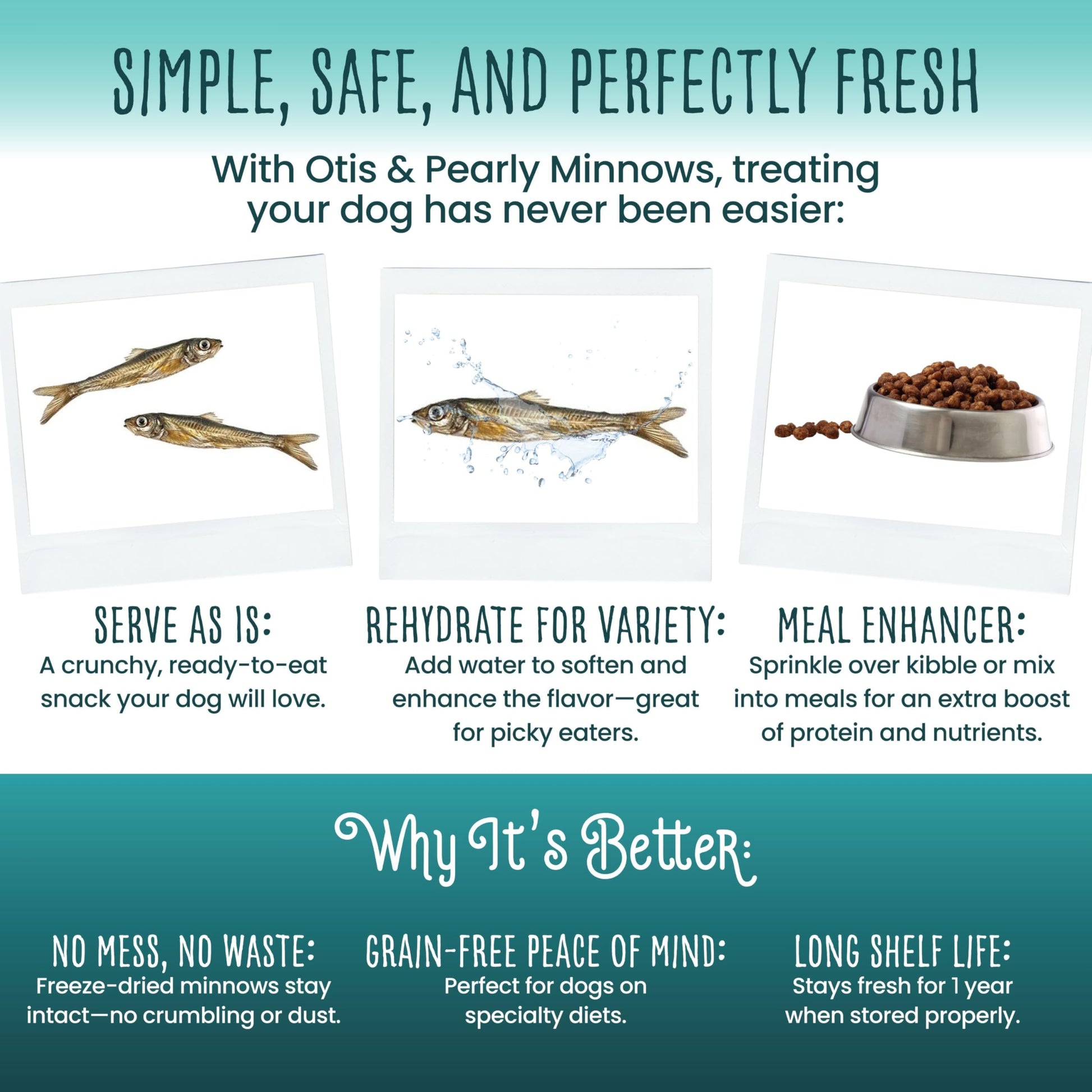 Otis & Pearly Freeze Dried Minnow Dog Treats - Single Ingredient, Made in USA - Healthy Protein Treat for Small, Medium, Large Breeds, 2oz