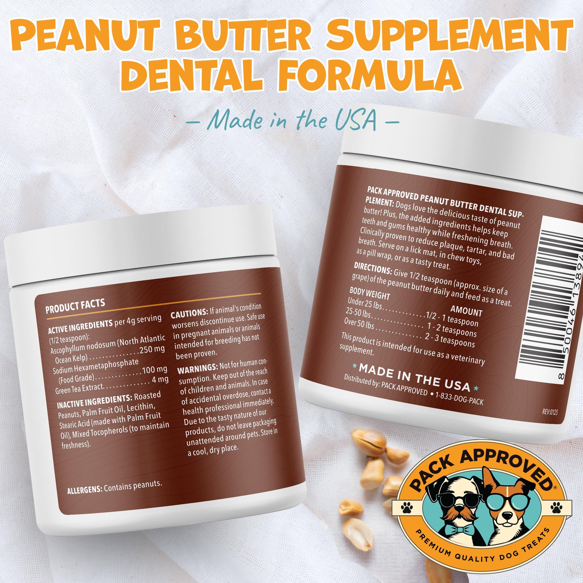 Pack Approved Dog Peanut Butter - with Ocean Kelp to Support Oral Care & Act as Dog Plaque and Tartar Remover - Lick Mat Treats for Bad Breath - Dental (8.46oz)