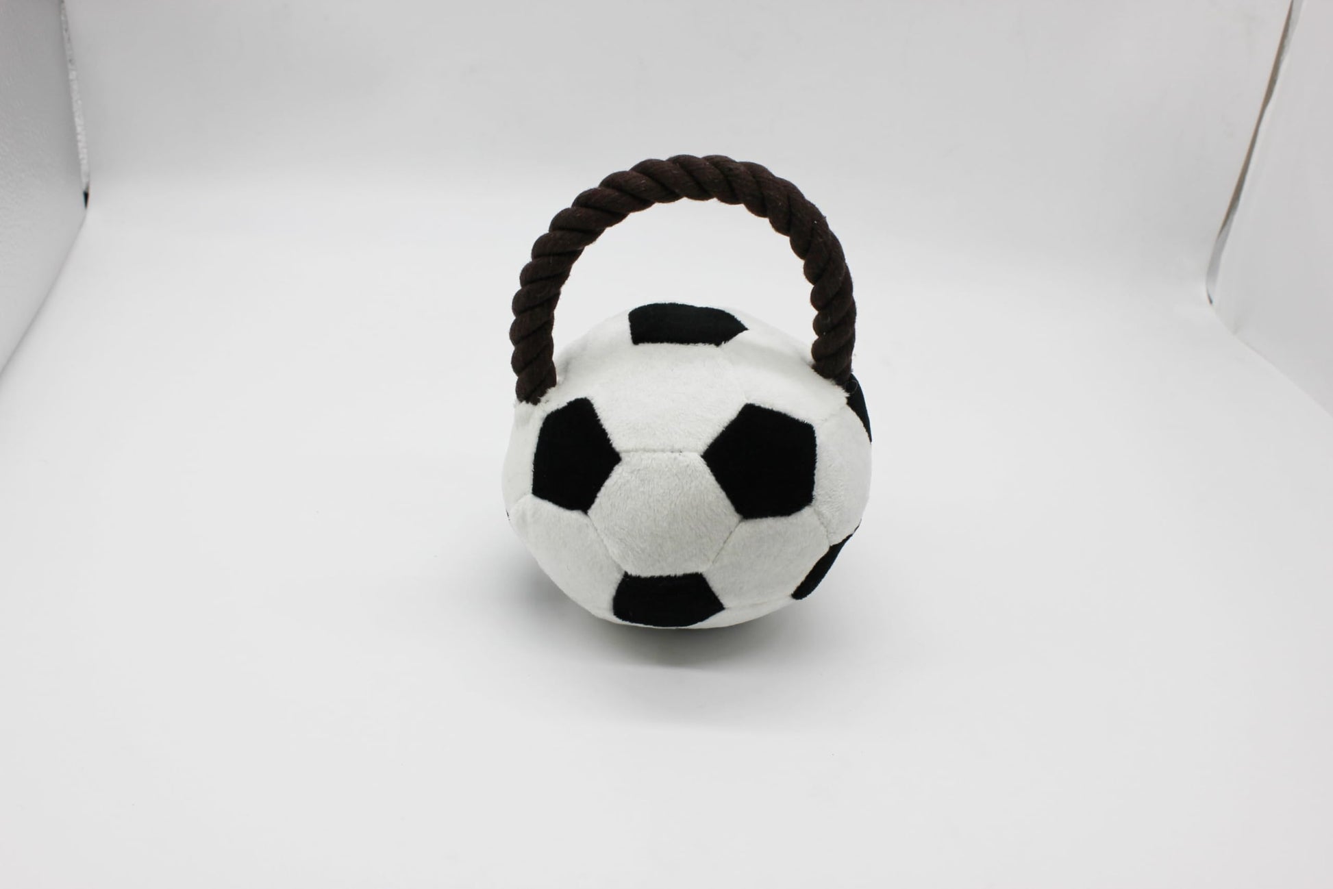 Details: Interactive Plush Soccer Ball Dog Toy with Rope Handles — An engaging interactive dog toy that keeps tails wagging! This soft plush dog soccer ball with straps Rope Toy is designed for fetch, tug, and chase. Perfect as dog toys to keep them busy, providing long-lasting mental stimulation for dogs during indoor and outdoor play. All-in-One Play: Combines a squeaky plush interactive dog ball with sturdy cotton ropes for fetch and tug of war dog toy fun. Great as outdoor dog toys and everyday dog fetch toys. Tough & Gentle: Built for enthusiastic chewers—ideal for those searching for dog balls for aggressive chewers and a durable alternative to typical indestructible dog ball claims, while staying gentle on teeth and gums. Easy to Grip & Carry: The strap design makes it a perfect dog soccer ball or soccer ball for dogs that’s simple to pick up, shake, and return. Works as a playful dog herding ball too. Beat Boredom: Use as interactive dog toys, stimulating dog toys, and dog interactive toys for boredom to channel energy into healthy play and learning. Training Ready: Ideal for recall, agility, and focus games—compatible with your dog agility course backyard set. A smart pick for puppy training tools and interactive puppy toys. All Sizes, All Stages: Versatile for dog toys for small dogs, dog toys for medium dogs, and dog toys for large dogs. Also great as puppy toys to keep them busy. Gift-Ready: A thoughtful dog birthday gift and everyday surprise for pets who love dog toy balls and pet toys. Perfect dog gifts for any occasion.