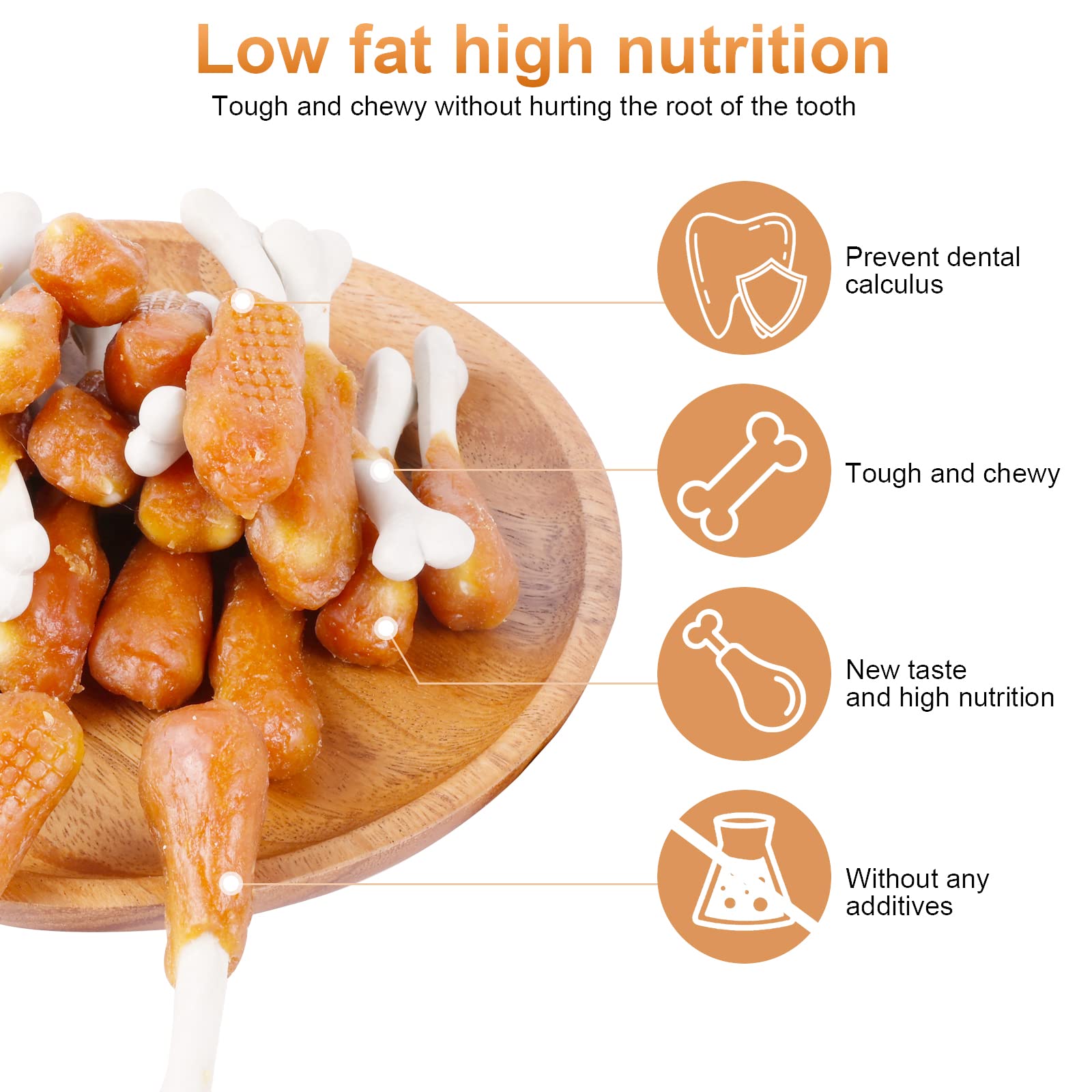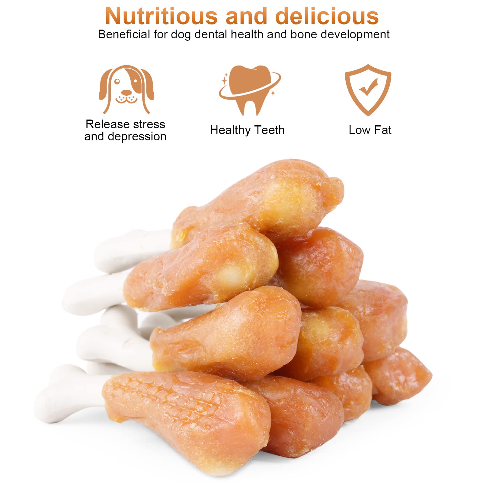 - 【Chicken Calcium Bones Training Treats】Chicken Wrapped Calcium Bones Dog Chews are expertly crafted into fun, handmade chicken leg shapes, providing not only a delightful treat but also a playful experience for your furry friend, making them perfect for training snacks and dog gifts.