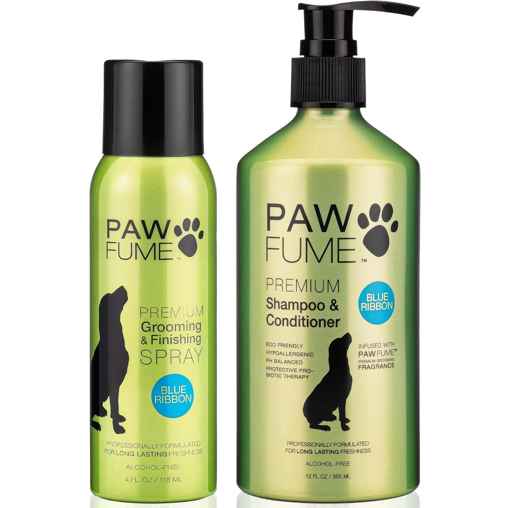 Details: Pawfume's shampoo & conditioner for dogs is a hypoallergenic + perfectly PH balanced 2-in-1 solution for the best dog baths. It is infused with a protective, probiotic therapy specially formulated to keep all dog breeds' skin & coats looking, feeling & smelling their best. Using the highest quality conditioners & salon quality botanicals, this gentle, deep-cleaning & fragrant shampoo keeps your dog's skin & coat fresher and healthier longer. One wash and you will feel–and smell–the difference! Our dog grooming & finishing spray is formulated with salon-quality botanicals for gorgeous fragrance and long-lasting performance. Premium conditioners moisturize, detangle and reduce static in your dog’s coat. Use this after and between baths for a healthier, better smelling coat that lasts for days. The Blue Ribbon scent profiles as a sweet and fruity cocktail of fresh melon, pear and raspberry.