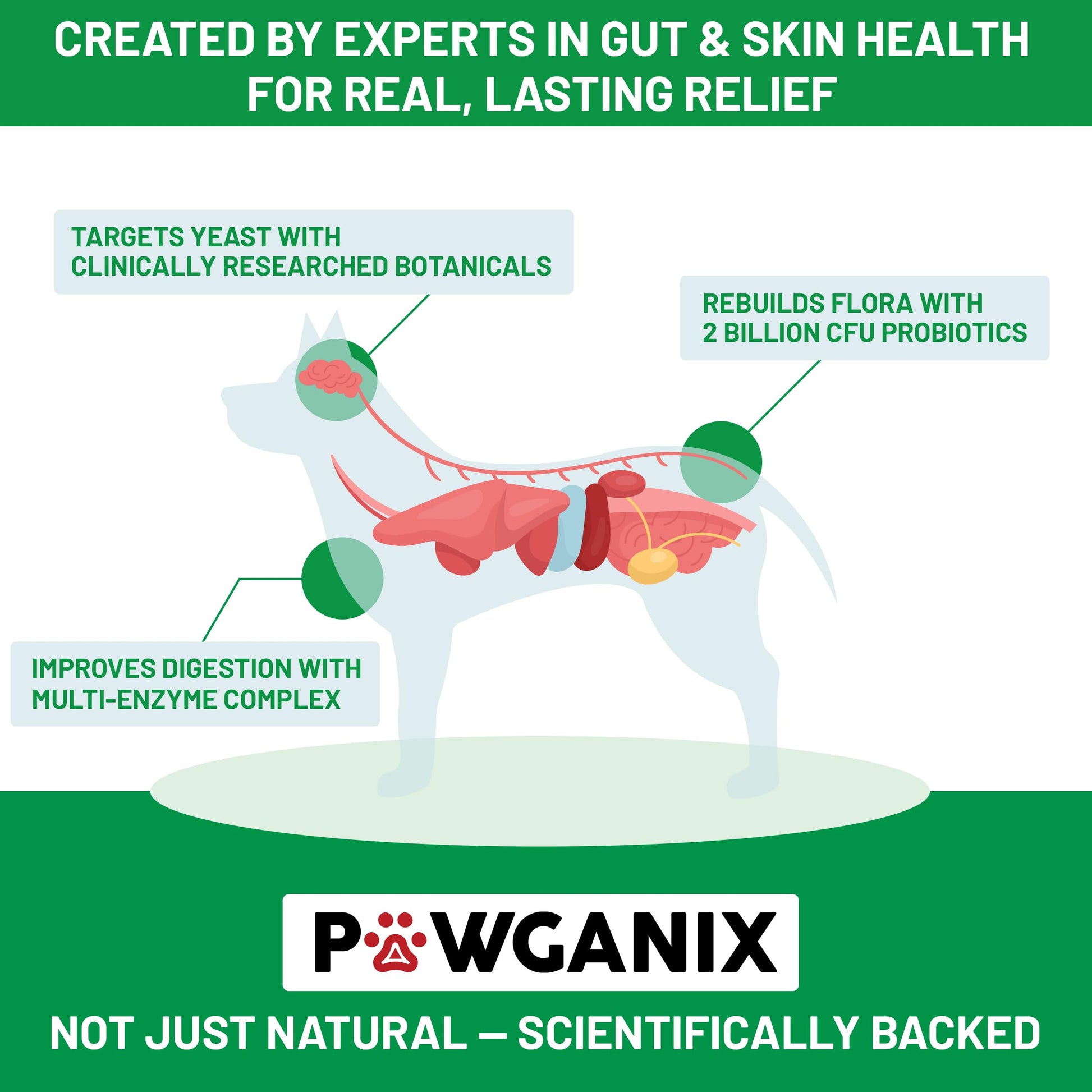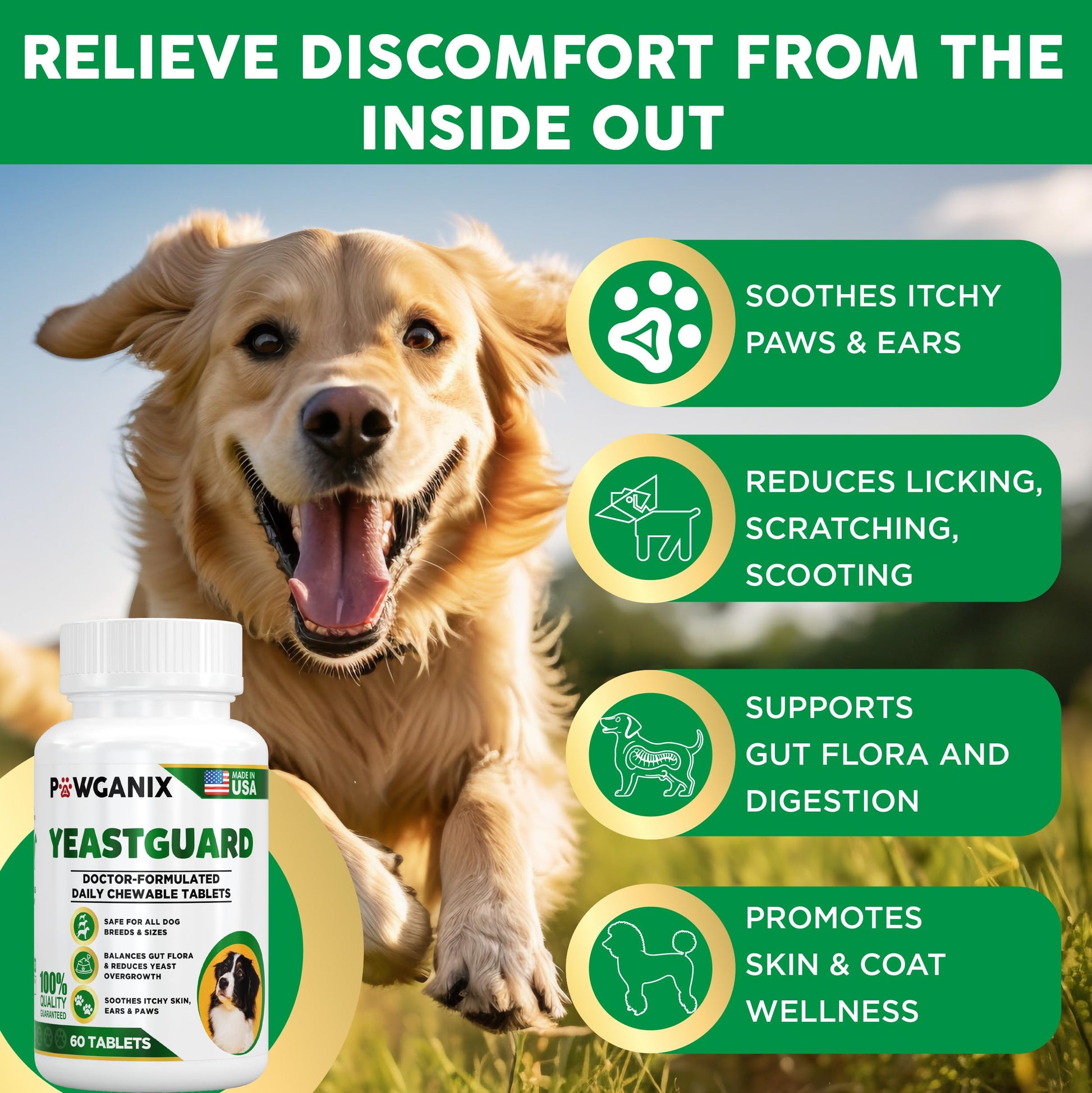- SUPPORTS HEALTHY YEAST BALANCE FROM WITHIN Formulated to help maintain a balanced internal environment that supports comfort in paws, ears, and skin. Promotes long-term wellness by nurturing gut and immune health — addressing the source of discomfort, not just the surface symptoms.