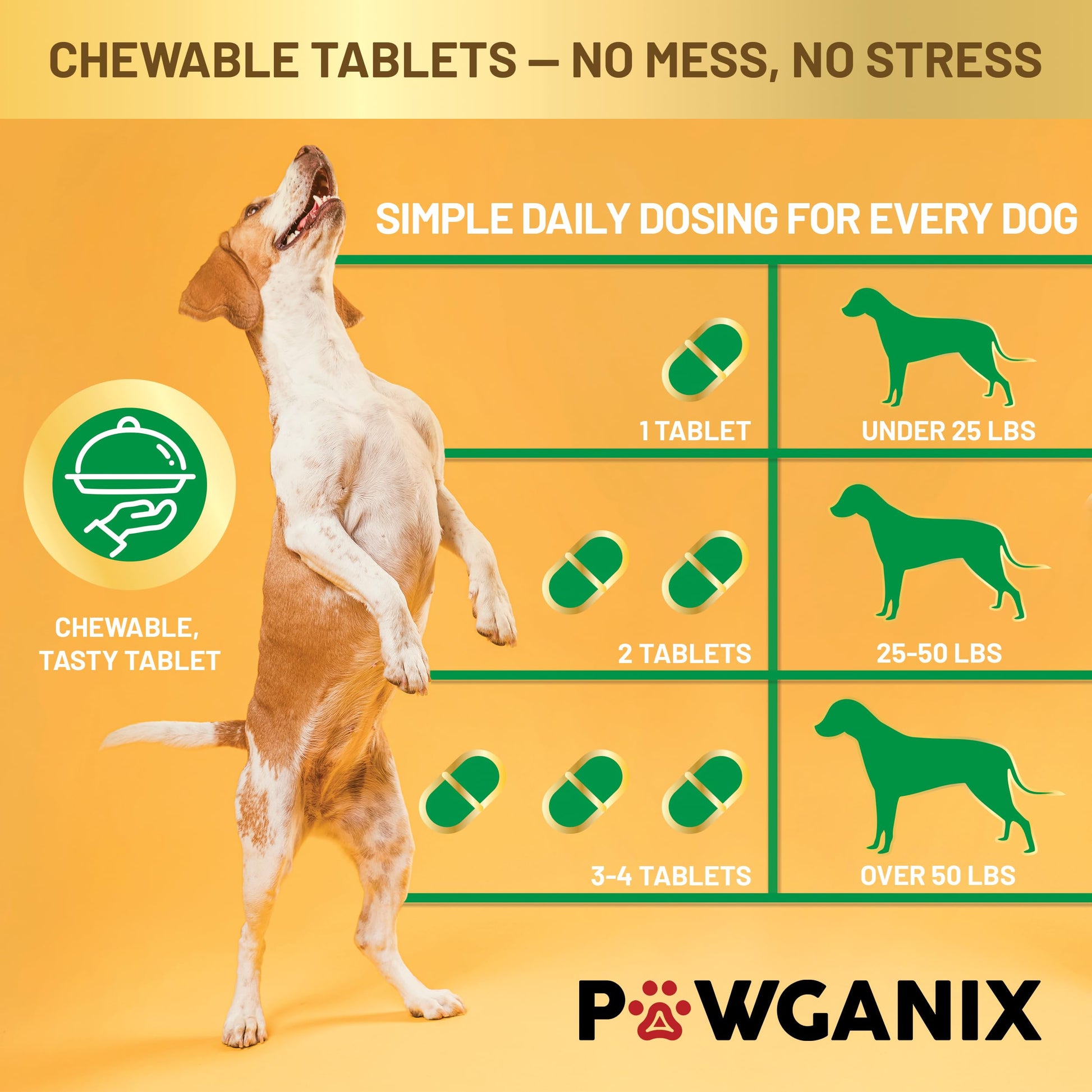 - TASTY CHEWABLE TABLETS Delicious chewable tablets dogs enjoy — no messy powders or hard-to-swallow pills. Just 1 to 4 chews daily, based on your dog’s size. Great for small, medium, and large breeds alike.