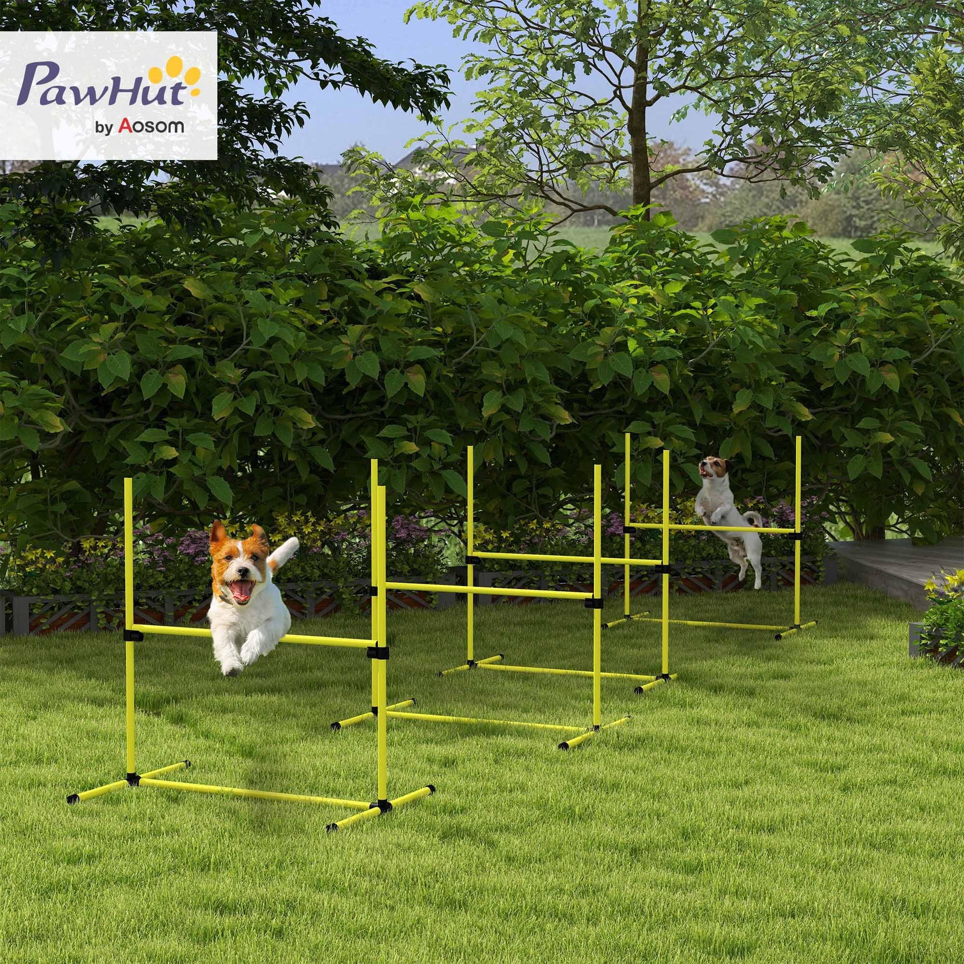 PawHut 4 Piece Dog Agility Training Equipment for Dog Agility Course with Adjustable Height Jump Bars, Included Carry Bag, & Displacing Top Bar, Yellow