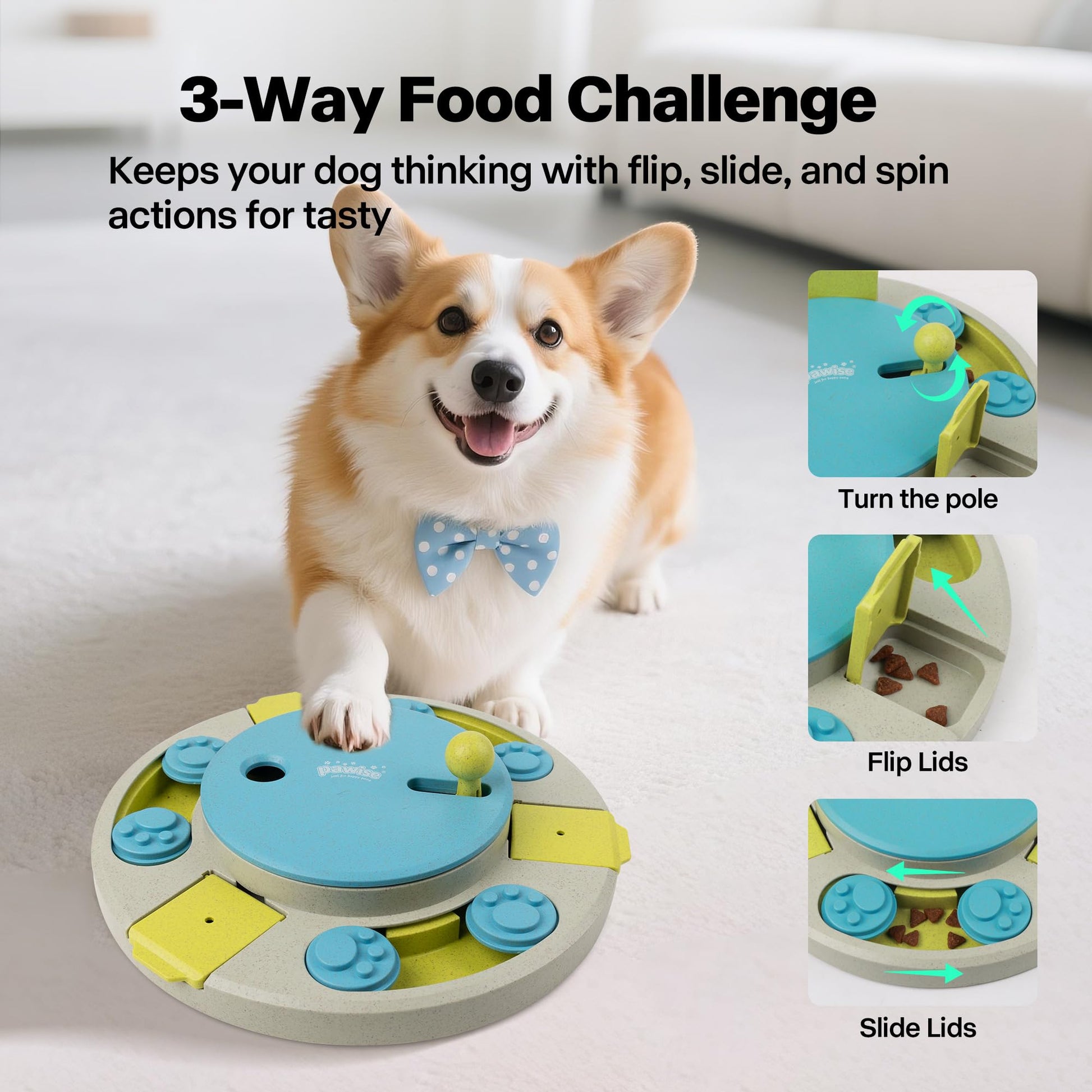 • 🐾 Boost Cognitive Development: Keep Your Dog’s Brain Active This interactive puzzle combines rotation sliding and hidden food challenges, stimulating your dog’s natural instincts. They will use their paws and nose to move parts and uncover treats, enhancing their mental abilities and reducing boredom. Ideal for small, cognitive-stimulated dogs and smart pups.