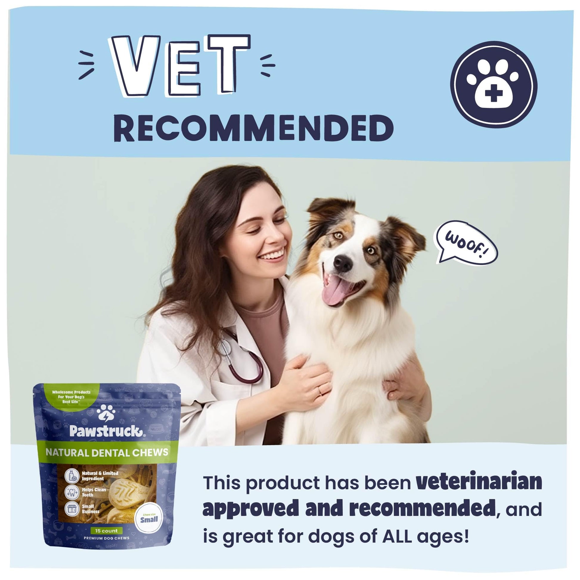 Pawstruck Natural Dental Chews for Small Medium Dogs & Puppies - Vet Recommended Brush Stick Treats Made in USA Breath Freshener to Improve Oral Hygiene & Clean Teeth - 15 Count - Packaging May Vary