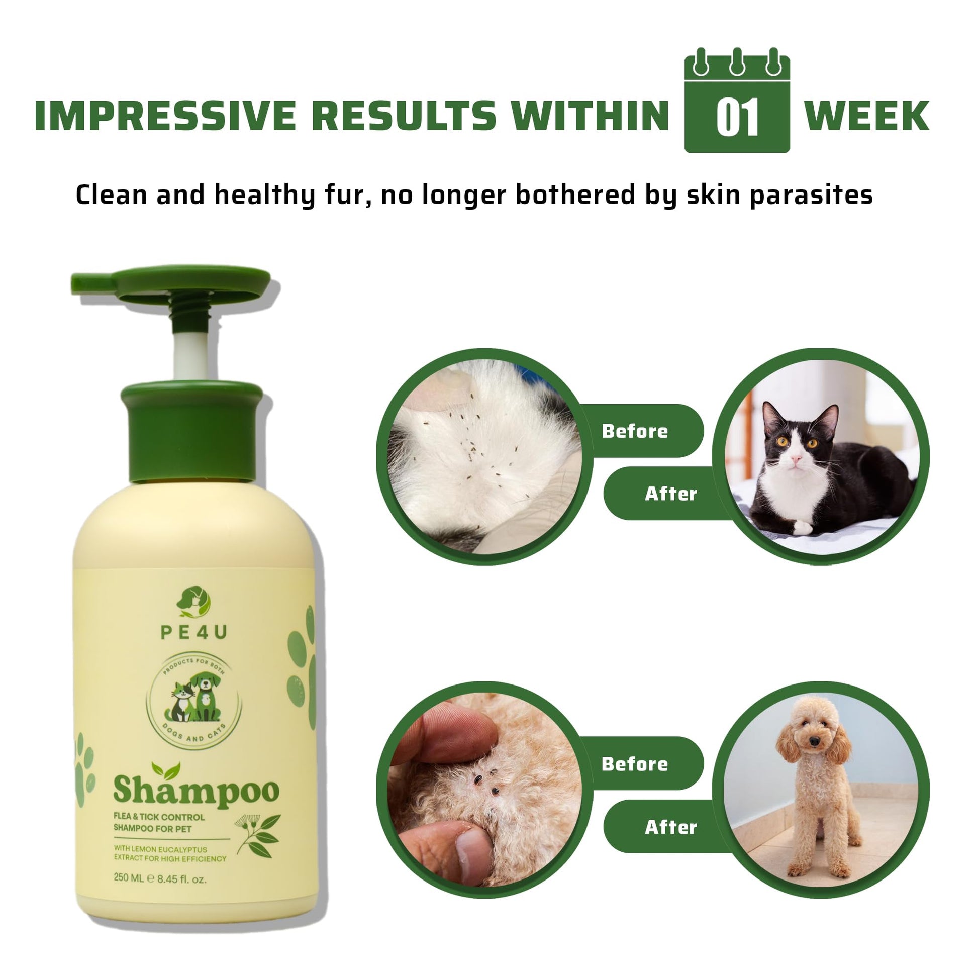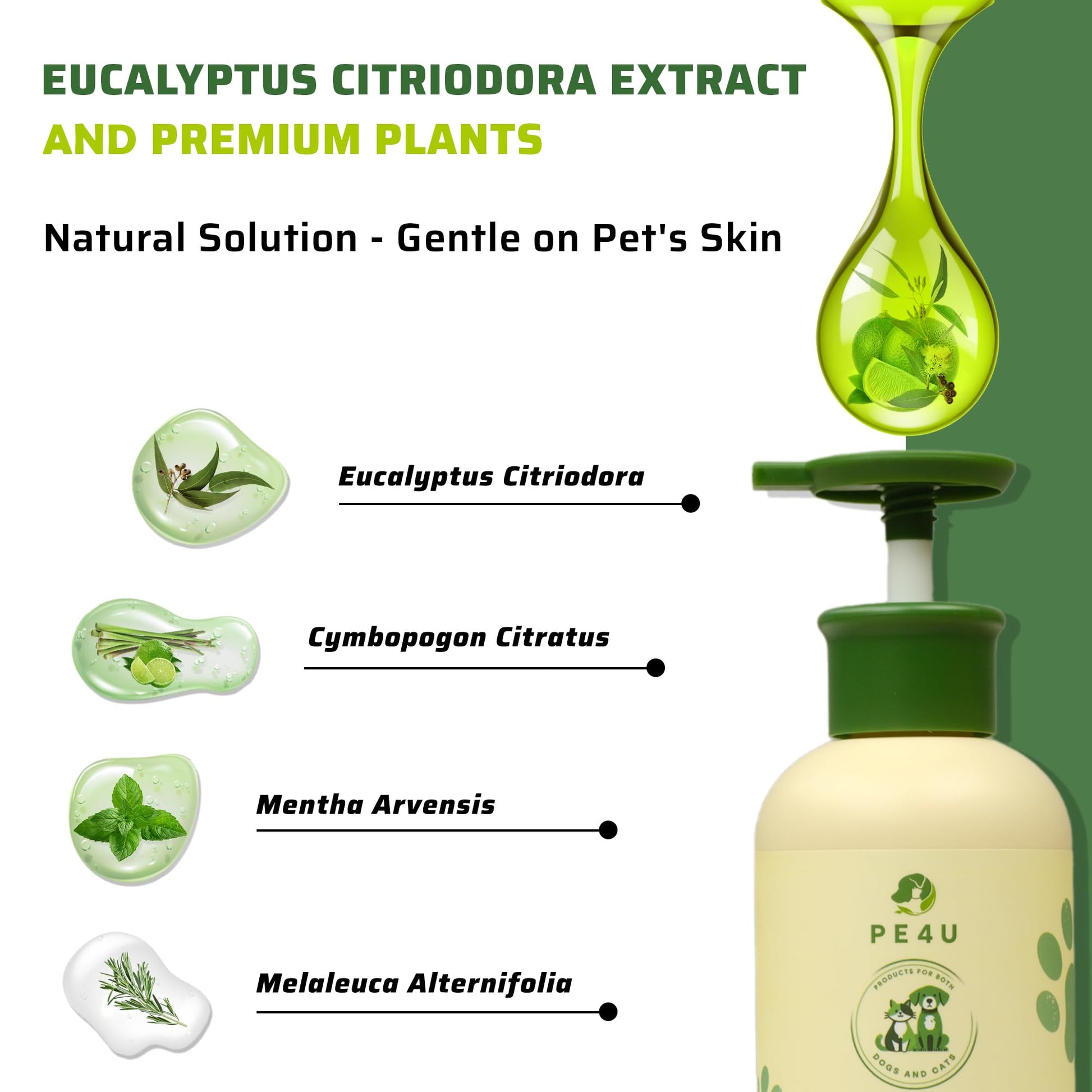 PE4U Natural Pet Shampoo for Dogs & Cats – Itch Relief, Odor Control & Deep Cleansing – Plant-Based Formula – Safe for Sensitive Skin, Reduces Shedding [Shampoo + Spray]