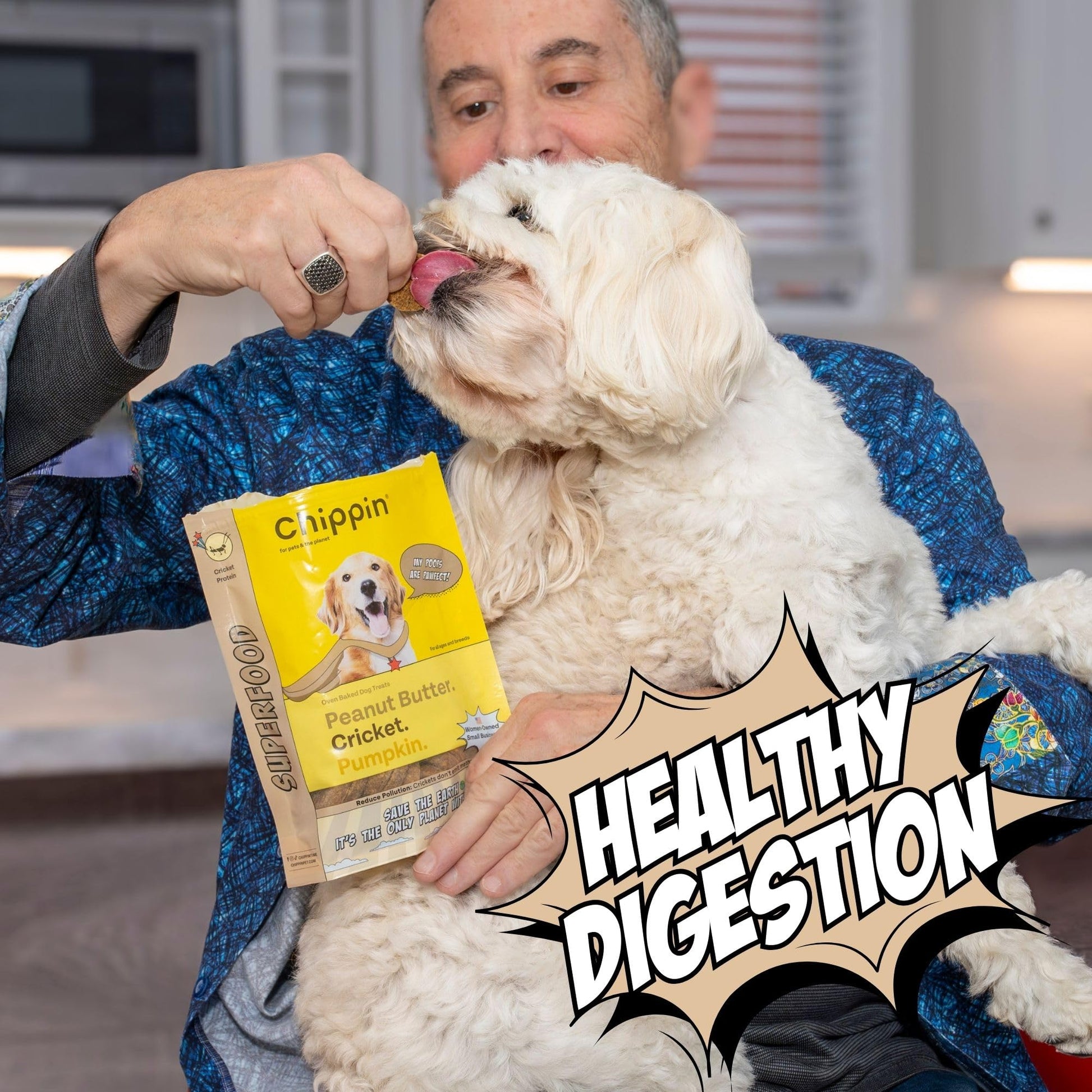 - FIBER RICH, ALL NATURAL DOG TREATS: Made with 100% dog safe peanut butter, pumpkin, and gut-healthy cricket protein, these crunchy dog treats are a great source of fiber, omega-3s, healthy fats, and protein. Chia seeds and flaxseed for dogs help to further support digestion, promote regular bowel movements and a healthy gut microbiome. Our peanut butter dog treats can also act as a fiber supplement for dogs when used as a meal topper, making them an ideal choice for promoting digestive balance and keeping your pup’s tummy happy.