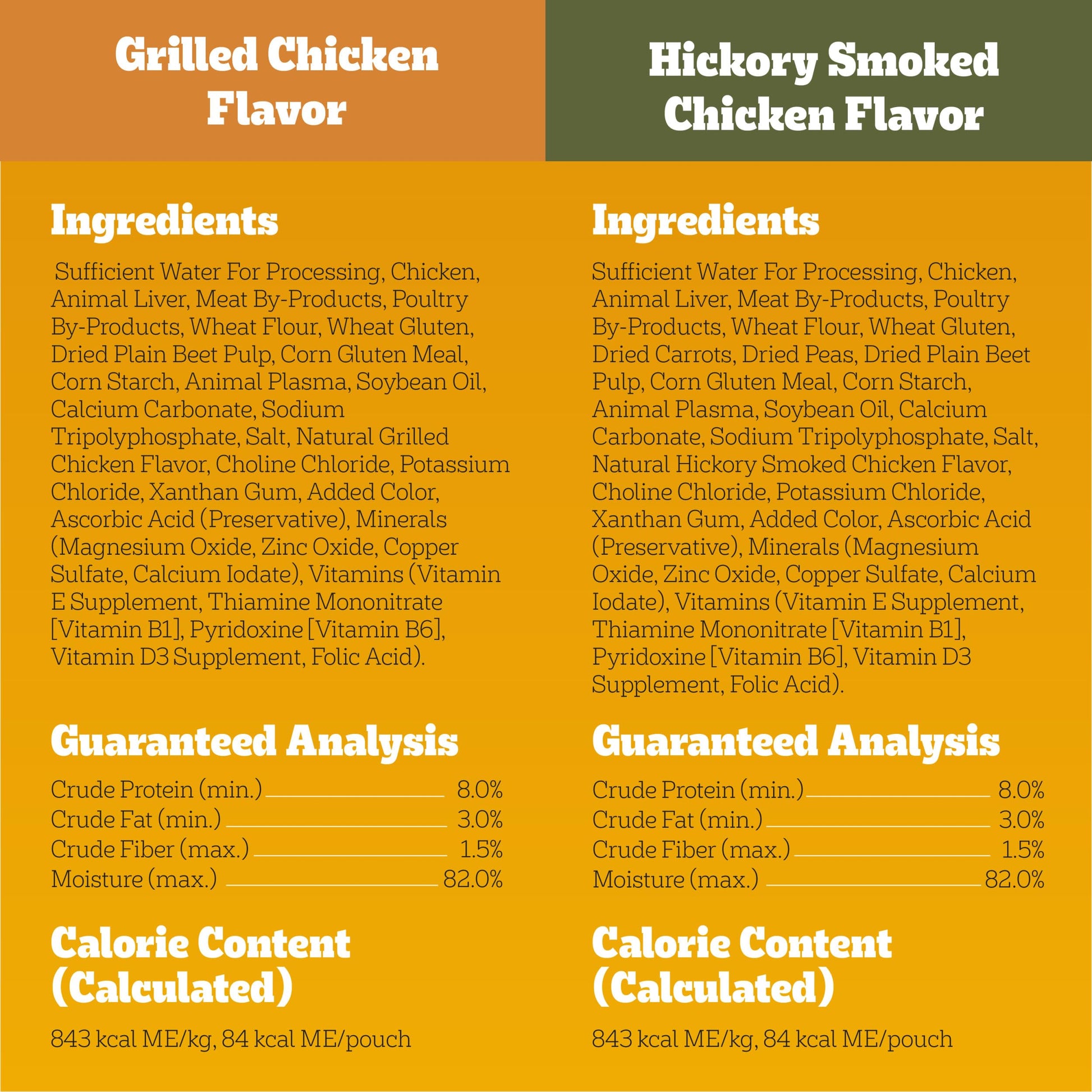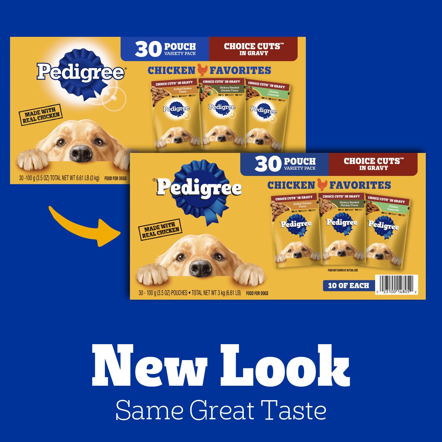 Details: Dogs bring out the good in us. Pedigree brings out the good in them. Express your love for your dog by serving Pedigree Chopped Ground Dinner Adult Soft Wet Dog Food 30-Count Variety Pack. These great-tasting wet dog food recipes are 100% complete and balanced For Adult Dogs and are made with real chicken, bringing a filling and familiar flavor to mealtime. Pedigree Chopped Ground Dinner Adult Soft Wet Dog Food 30-Count Variety Pack features three delicious options: Grilled Chicken, Hickory Smoked Chicken Flavor, Chicken Casserole, so your dog can have favorites to choose from. This versatile soft dog food can be served as a topper, mixed with dry dog food, or enjoyed by itself as a complete meal For Adult Dogs, bringing your dog a variety of ways to indulge. Crafted with no high fructose corn syrup, artificial flavors, or added sugars, Pedigree Chopped Ground Dinner Adult Soft Wet Dog Food 30-Count Variety Pack shows your dog that you care and want them to have great tasting food.