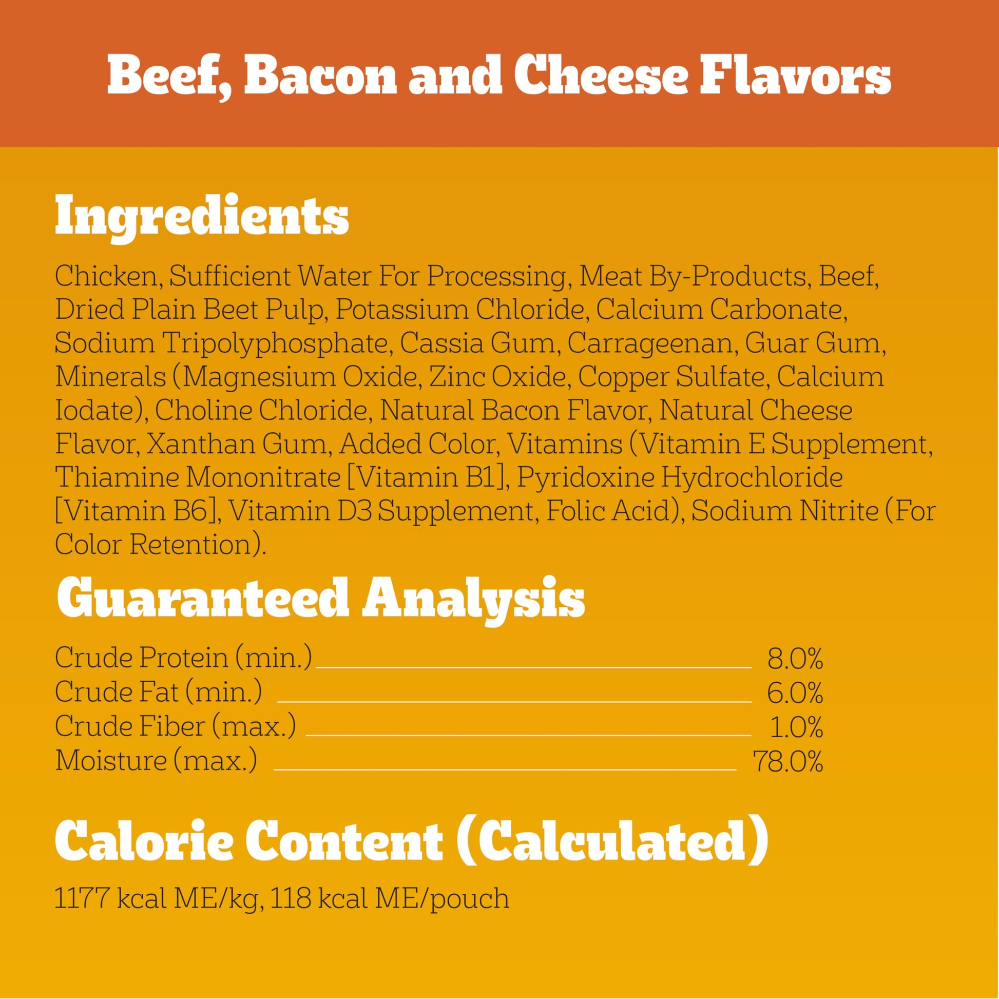 Details: Dogs bring out the good in us. Pedigree brings out the good in them. Express your love for your dog by serving Pedigree Chopped Ground Dinner Adult Wet Dog Food 18-Count Cheese Variety Pack. These great-tasting wet dog food recipes are 100% complete and balanced For Adult Dogs and are made with real beef or real chicken, bringing a filling and familiar flavor to mealtime. Pedigree Chopped Ground Dinner Adult Wet Dog Food 18-Count Cheese Variety Pack features three delicious options: With Hearty Chicken, With Slow Cooked Beef, and Beef, Bacon, and Cheese Flavors, so your dog can have favorites to choose from. This versatile soft dog food can be served as a topper, mixed with dry dog food, or enjoyed by itself as a complete meal For Adult Dogs, bringing your dog a variety of ways to indulge. Crafted with no high fructose corn syrup, artificial flavors, or added sugars, Pedigree Chopped Ground Dinner Adult Wet Dog Food 18-Count Cheese Variety Pack. Pouches shows your dog that you care and want them to have great tasting food.