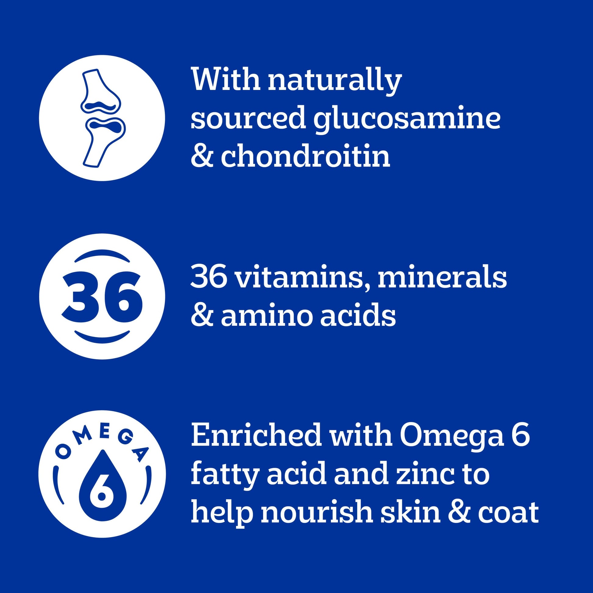 - Healthy Bones and Joints: Made with naturally sourced Glucosamine and Chondroitin to help support healthy bones and joints