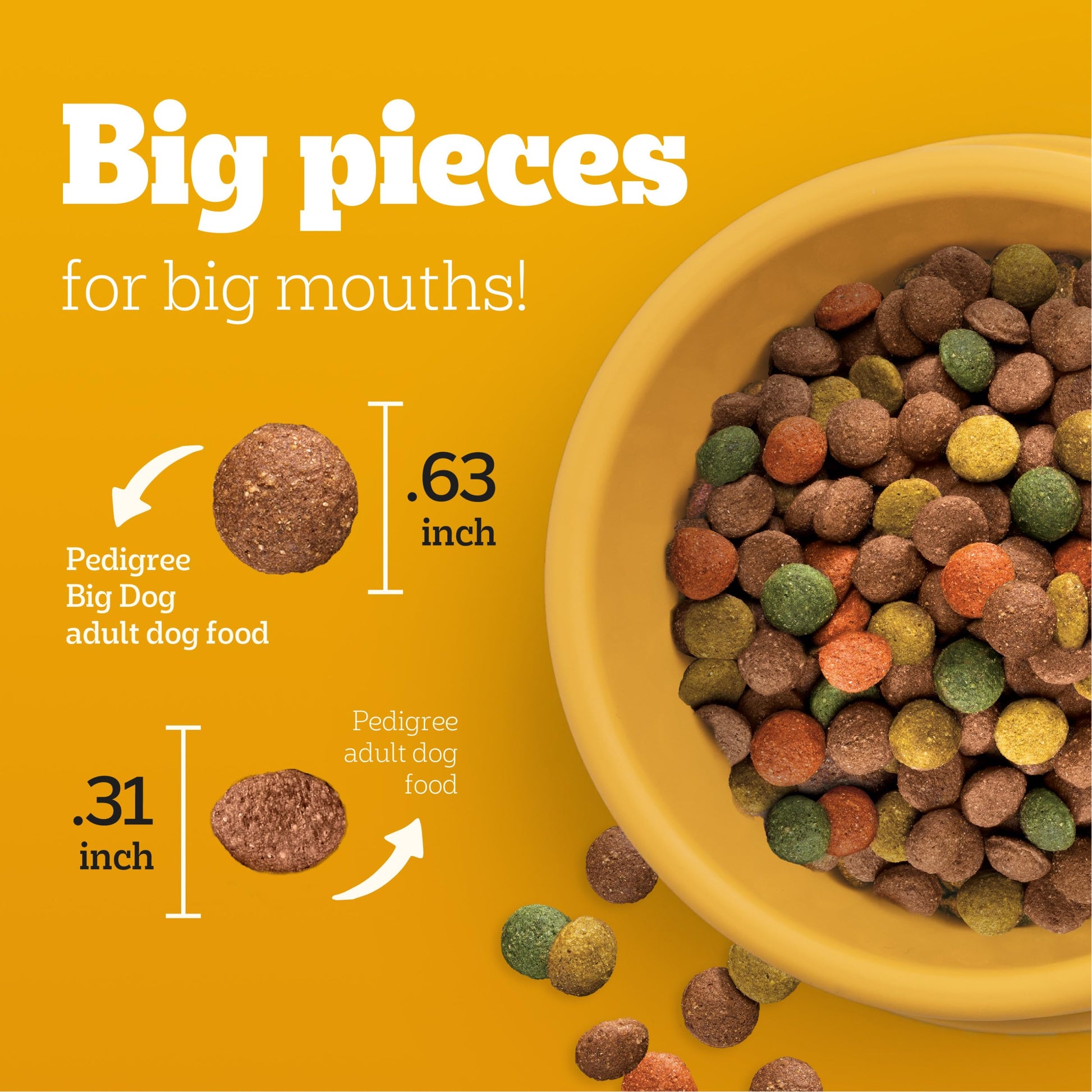 Details: Dogs bring out the good in us. Pedigree brings out the good in them. Express your love for your dog by serving Pedigree Complete Nutrition Big Dog Dry Dog Food, Roasted Chicken, Rice and Vegetable Flavor recipe. This great-tasting dry dog food recipe is made with whole grains, protein, and accents of vegetables so you can feel confident that your dog is getting a high-quality meal. To support your dog’s health and vitality, this large breed dry dog food recipe is formulated with 36 vitamins, minerals, and amino acids. It also contains Omega 6 Fatty Acid and Zinc to help nourish a healthy skin and coat. With no high fructose corn syrup, artificial flavors, or added sugars, Pedigree Complete Nutrition Big Dog Dry Dog Food, Roasted Chicken, Rice and Vegetable Flavor shows your dog that you care…and have great taste.