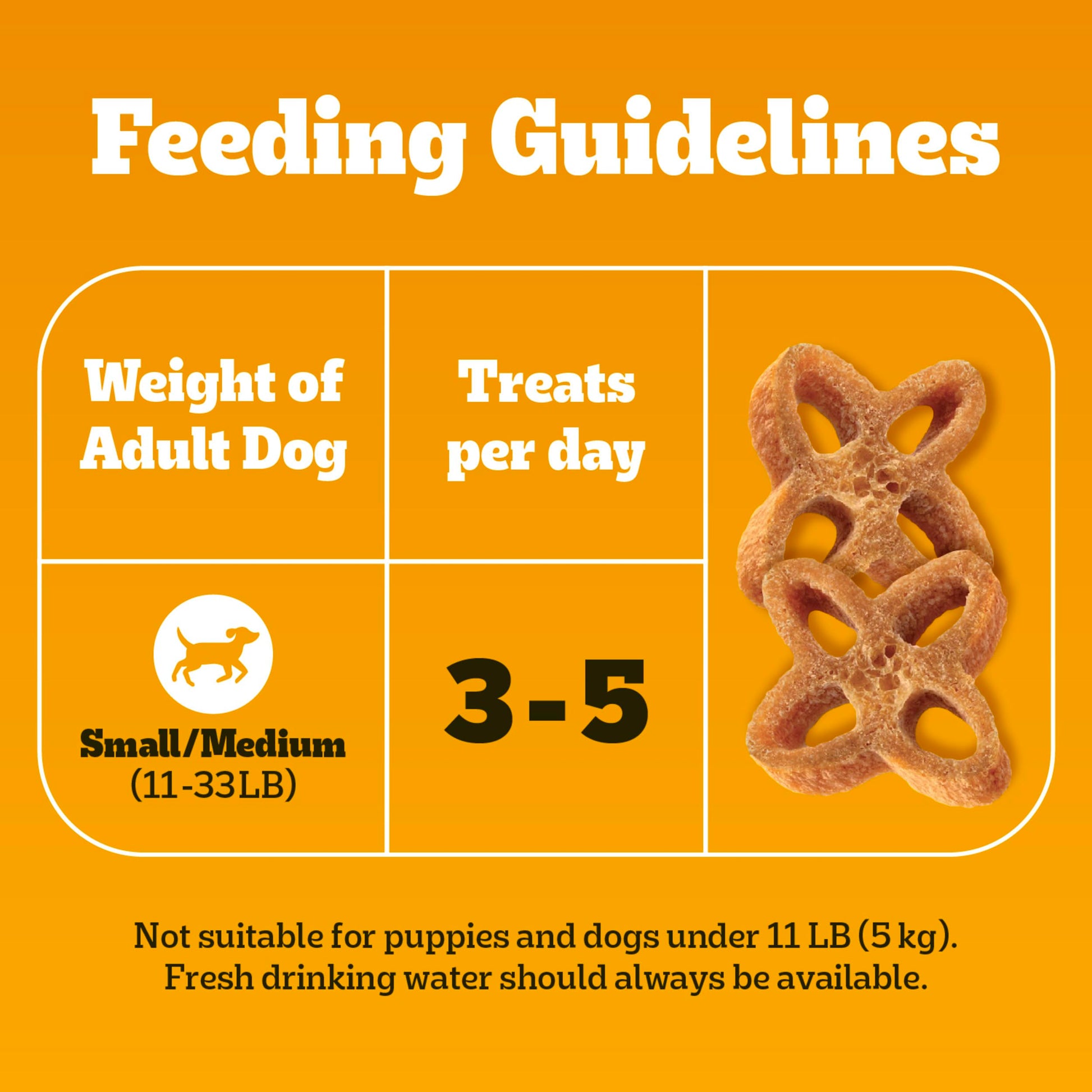 Details: Dogs bring out the good in us. Pedigree brings out the good in them. Pedigree Dentastix Chewy Chunx Small & Medium Dog Treats Chicken Flavor are made with a delicious chicken flavor your dog will love. These oral care dog treats have a chewy texture that helps reduce plaque buildup and clean teeth. With less than 25 calories per treat, Dentastix Chewy Chunx are great for rewarding. This small and medium adult dog treat helps clean teeth and supports gum health while being made with no added sugars and low fat. Treat your dog up to 5 times a day with Pedigree Dentastix Chewy Chunx and help keep that slobbery smile you love healthy.