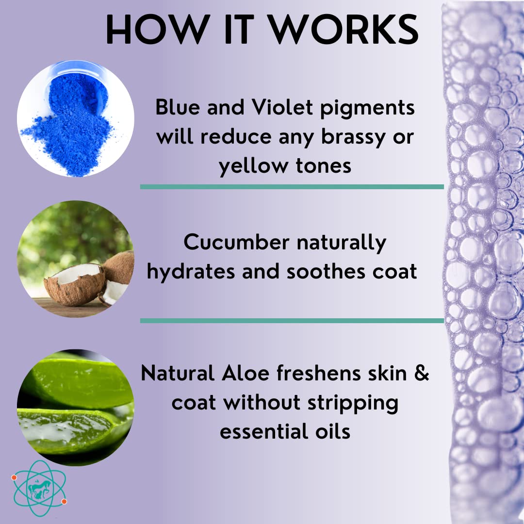 • BRIGHTENS NATURALLY: Leaves your dog with a bright shiny coat but does not have harmful ingredients that can result in dry itchy skin. No MEA, TEA or DEA, Sulfate, Phthalate, Paraben and always cruelty free ! Will not leave any blue residue unlike cheaper alternatives.