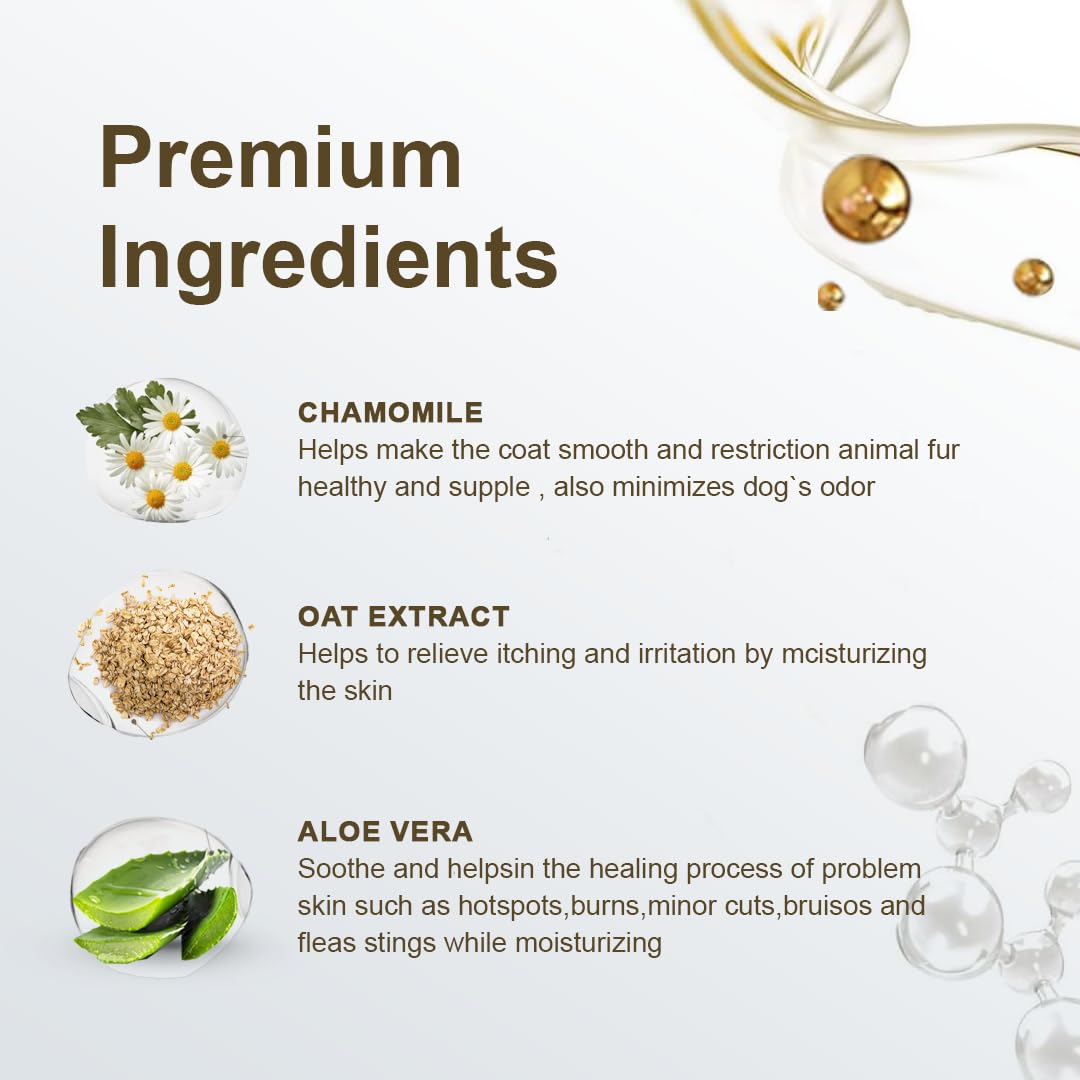[Restoring Skin]: Helps to restore moisture balance to the skin, preventing dryness and flakiness while promoting a healthy, glossy coat.