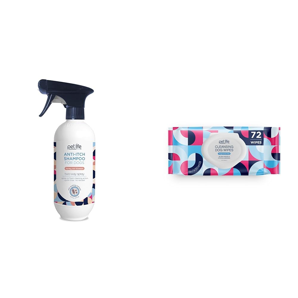 Pet Life Unlimited Dog Shampoo, Anti-Itch Spray Shampoo & Cleansing Dog Wipes, Fragrance Free (72 ct) Bundle - Pet Wipes for Dogs, Dog Cleaning Wipes - Plant-Based Dog Wipes with Moisturizing Aloe
