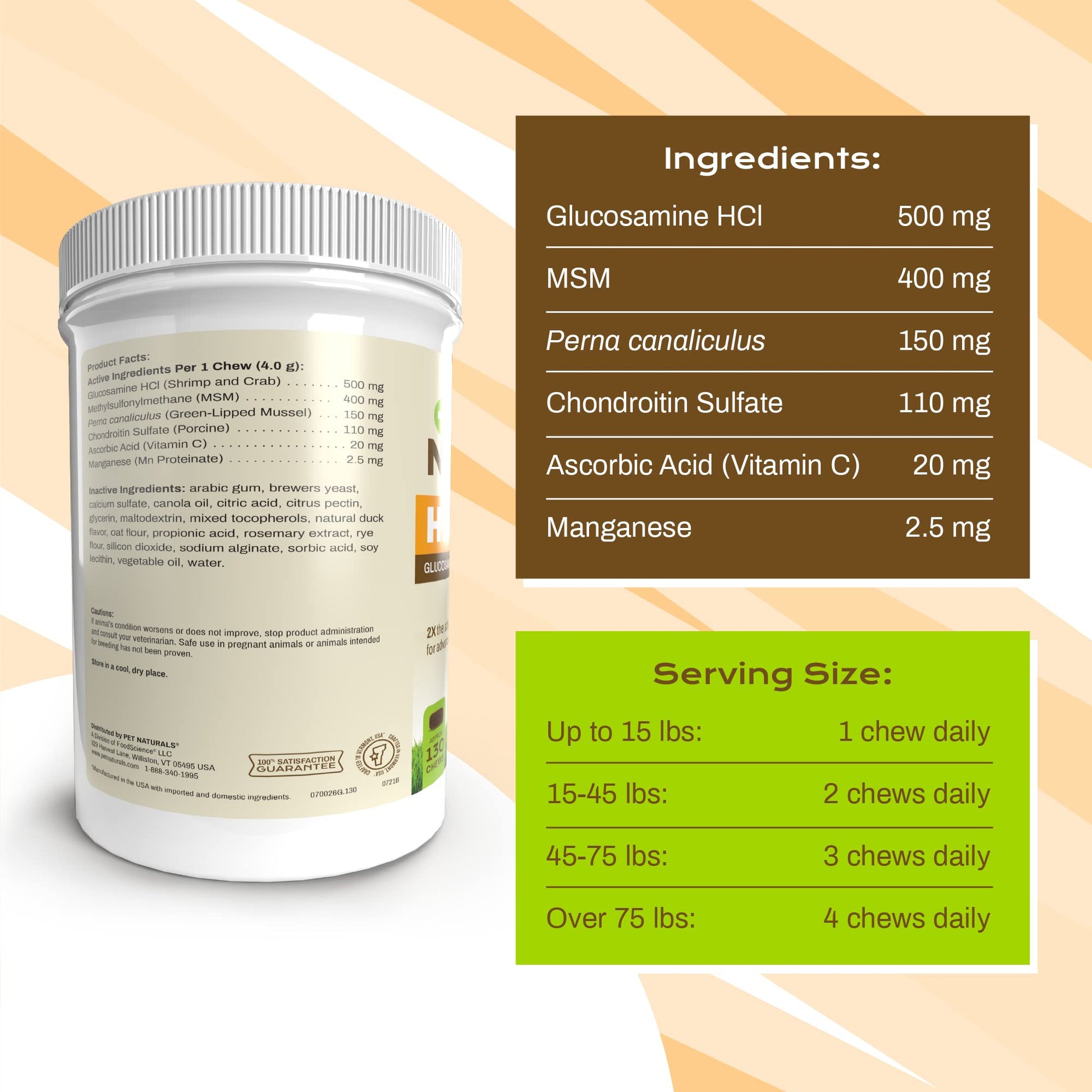 - Hip + joint Pro soft chews are veterinarian formulated with 2x the joint supporting ingredients of other brands. Including Glucosamine, MSM and Chondroitin