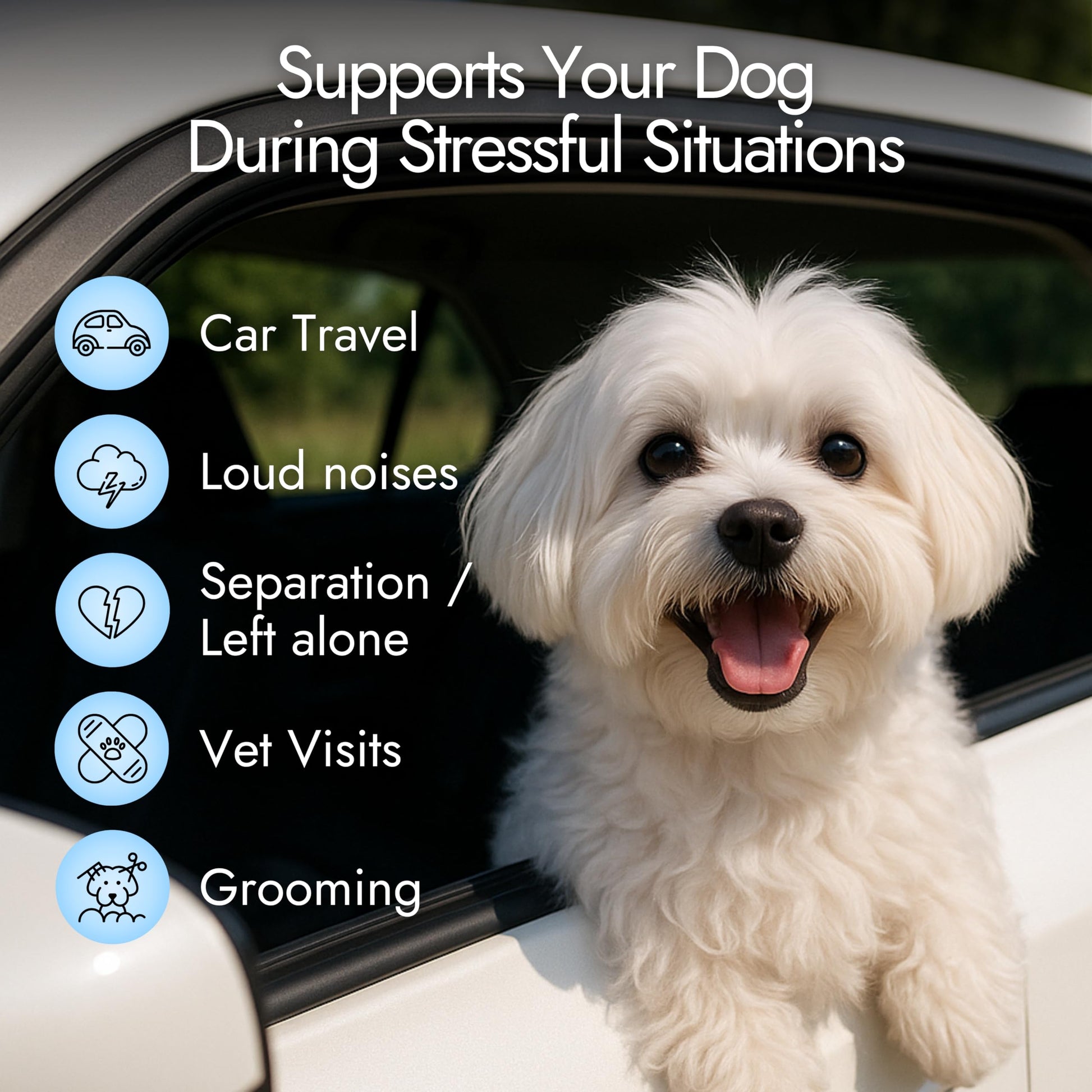 PORTABLE STRESS SUPPORT FOR DOGS ON THE GO - These dog calming chews come in a convenient, portable form, perfect for supporting stress relief on the go. Whether you're traveling, heading to the groomer, or dealing with separation anxiety relief for dogs, these provide supporting dog anxiety relief whenever your pet needs it most. Keep them in your bag or car for easy access and help your dog. Crafted by a woman-owned small business, these chews are a perfect complement to your dog accessories.