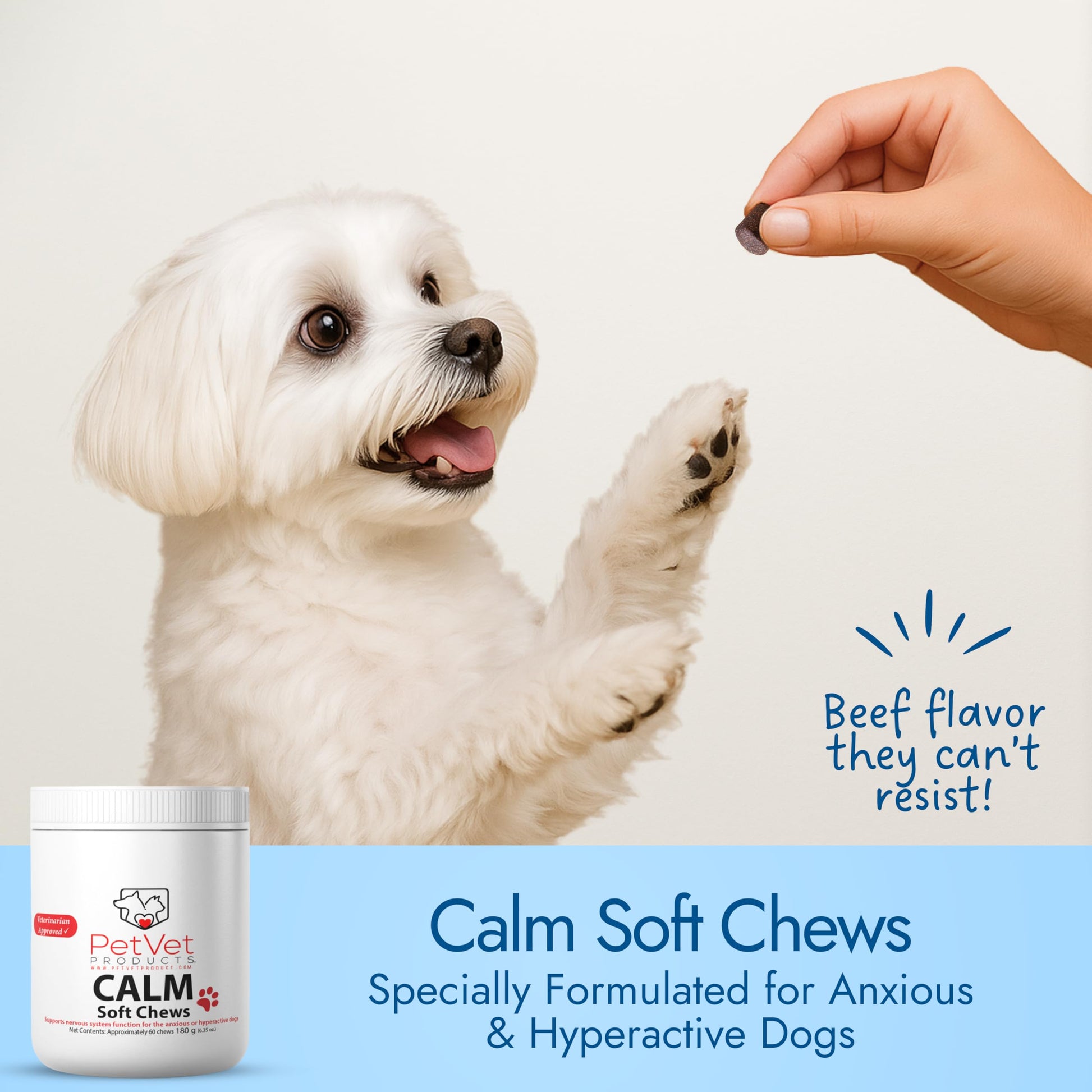 Pet Vet Calming Chews for Dogs – Dog Anxiety Relief (Beef Liver Flavor 60 Chews) – Stress Relief, Dog Supplements for Hyperactive & Anxious Dogs – Dog Anxiety Chews for Relaxation, Dog Care Products