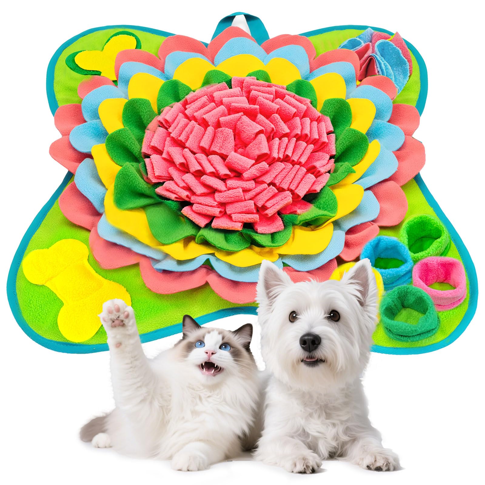• Usage Notes - Packed compressed for clean and tidy shipping, please unfold and air for hours to restore shape. Please understand that wrinkles from friendly fabric are normal and do not affect function. Enjoy interactive bonding througth dog puzzle toys. For the first few uses, please gently guide your dog to interact with the snuffle mat correctly. This prevents frustration from improper use that may lead to destructive chewing or tearing. Always encourage your pet to forage—not bite—the mat