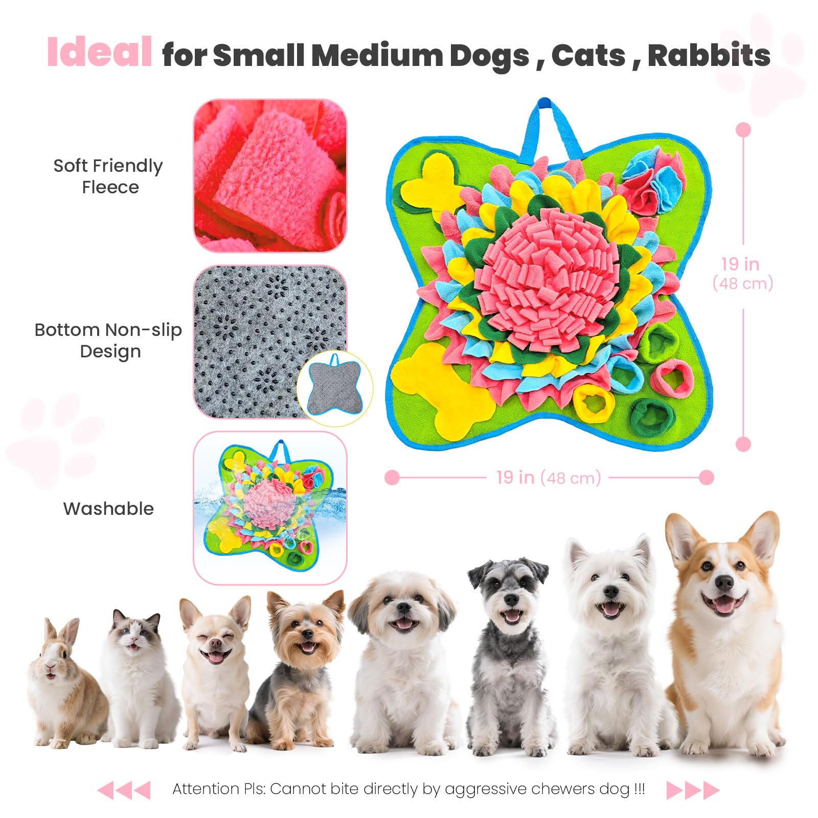• Ideal for Small Medium Breed Pets - Our 19*19 inch dog sniffing mat is exceptionally durable. Made of soft fleece fabric for pet-friendly comfort, with non-slip backing for stability. Suitable for small, medium dogs, cats, rabbits, including Chihuahuas, Shih Tzus, Yorkshire Terriers, French Bulldogs, Corgis, Border Collies. Easy to clean (hand wash recommended). Compact for travel or home use