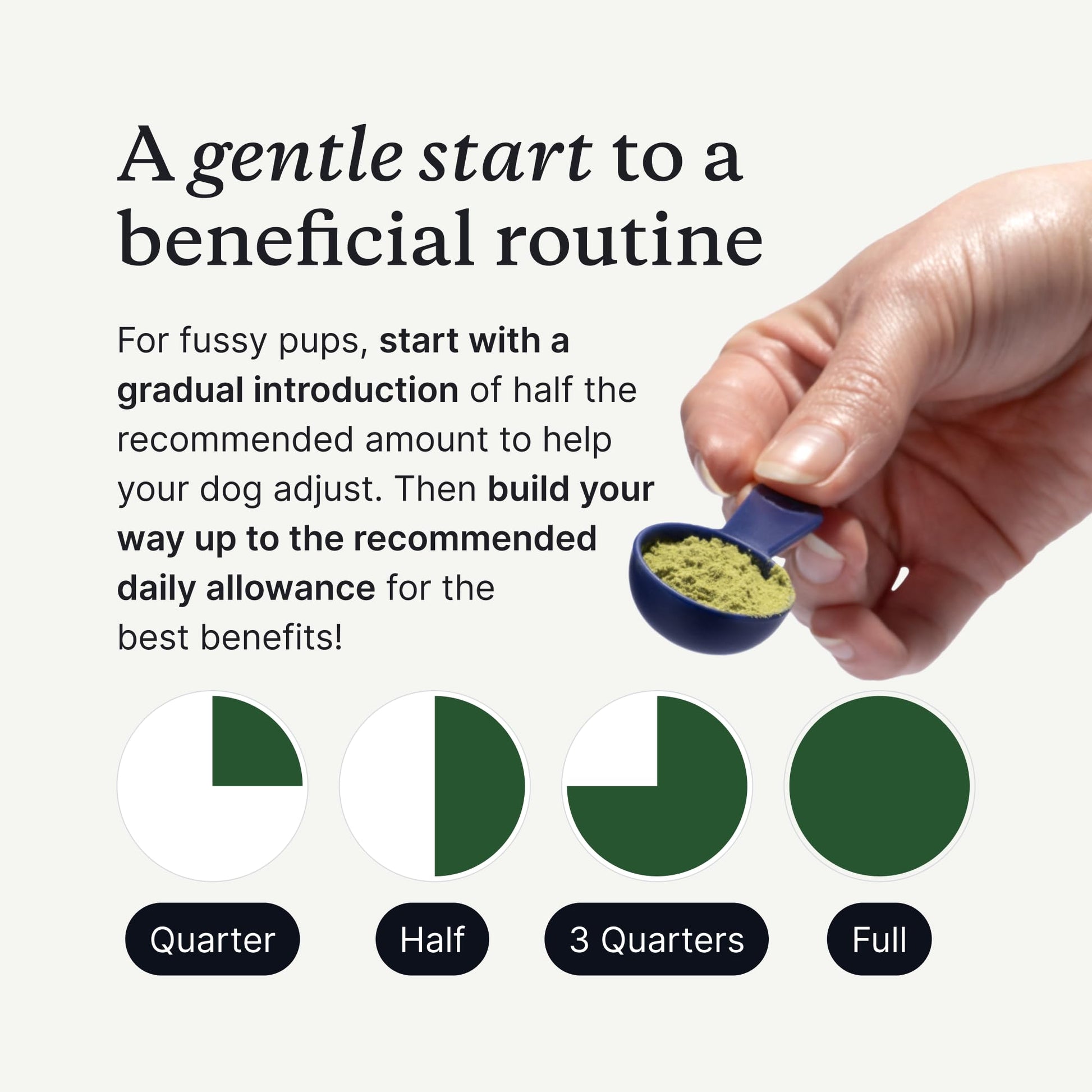 - Easy To Use - Choose the right formula for your dog's size (Extra Small, Small, Medium, Large) and add one scoop using the scoop provided in the tub to their plate.