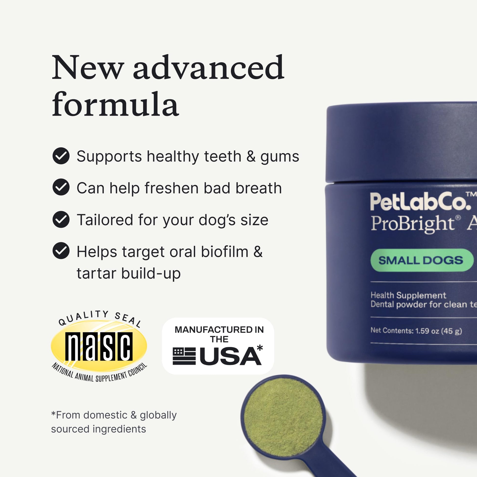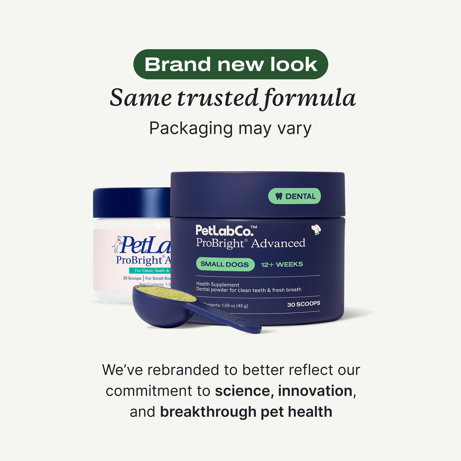 PetLab Co. ProBright Advanced Dental Powder - Dog Breath Freshener - Teeth Cleaning Made Easy – Targets Tartar & Bad Breath - Packaging May Vary - Formulated for Small Dogs