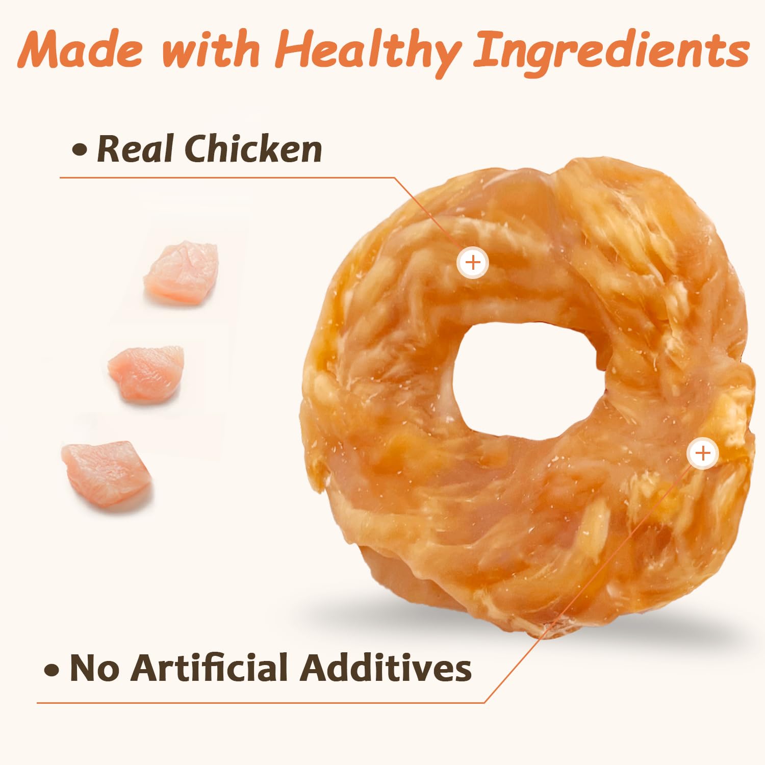 PETPURO Chicken Rings Dog Treats, Real Chicken Jerky Rawhide-Free Soft Chews, Natural High Protein Limited Ingredient Training Snacks for Small Medium Large Dogs, 10.6oz