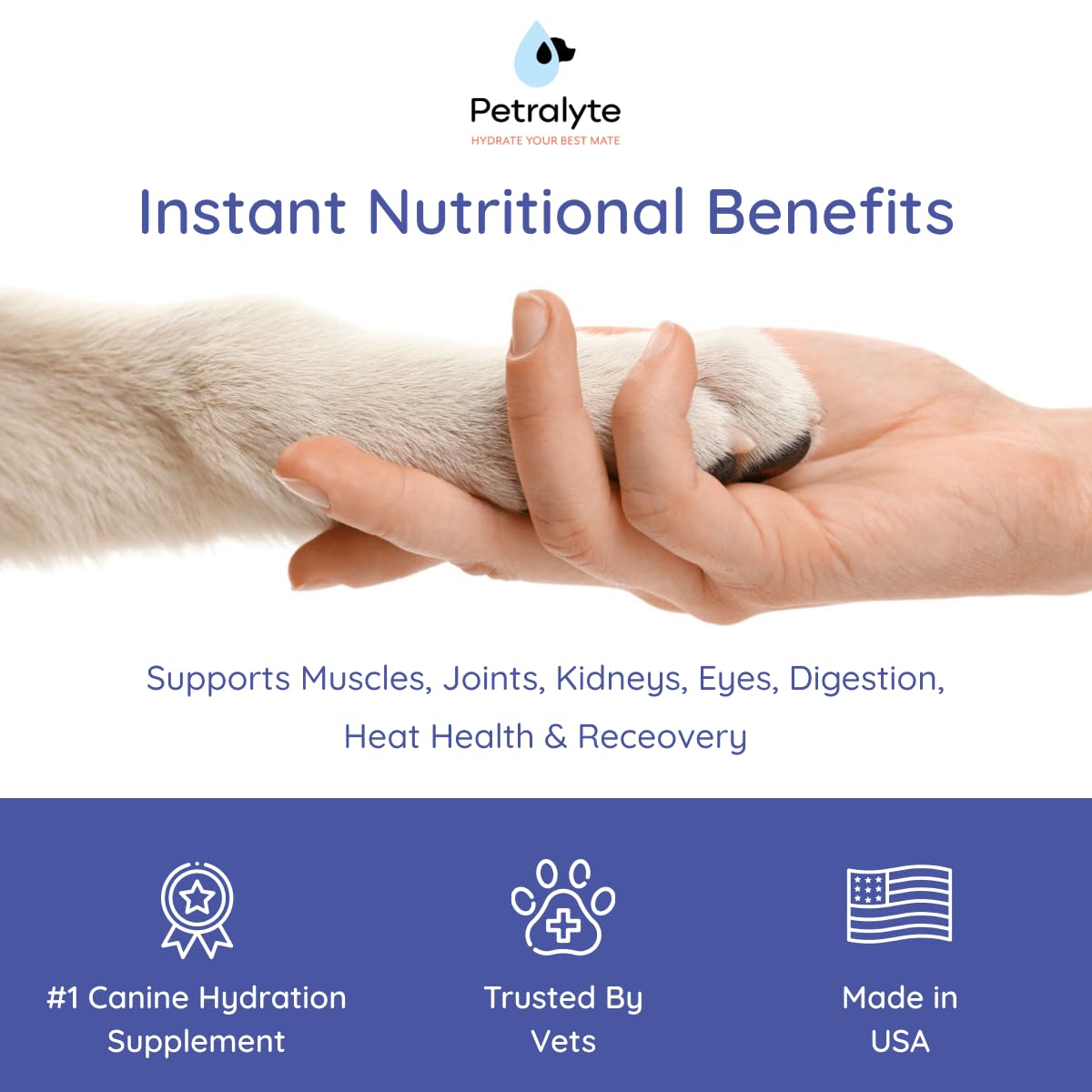 • Veterinary Formulated - Petralyte veterinary-certified nutrient and electrolyte for dogs supplement drastically improves the speed and efficiency of water absorption, helping dogs to stay active and healthy. Our Dog Hydration Supplement Contains Taurine, Glucosamine, MSM and much more!