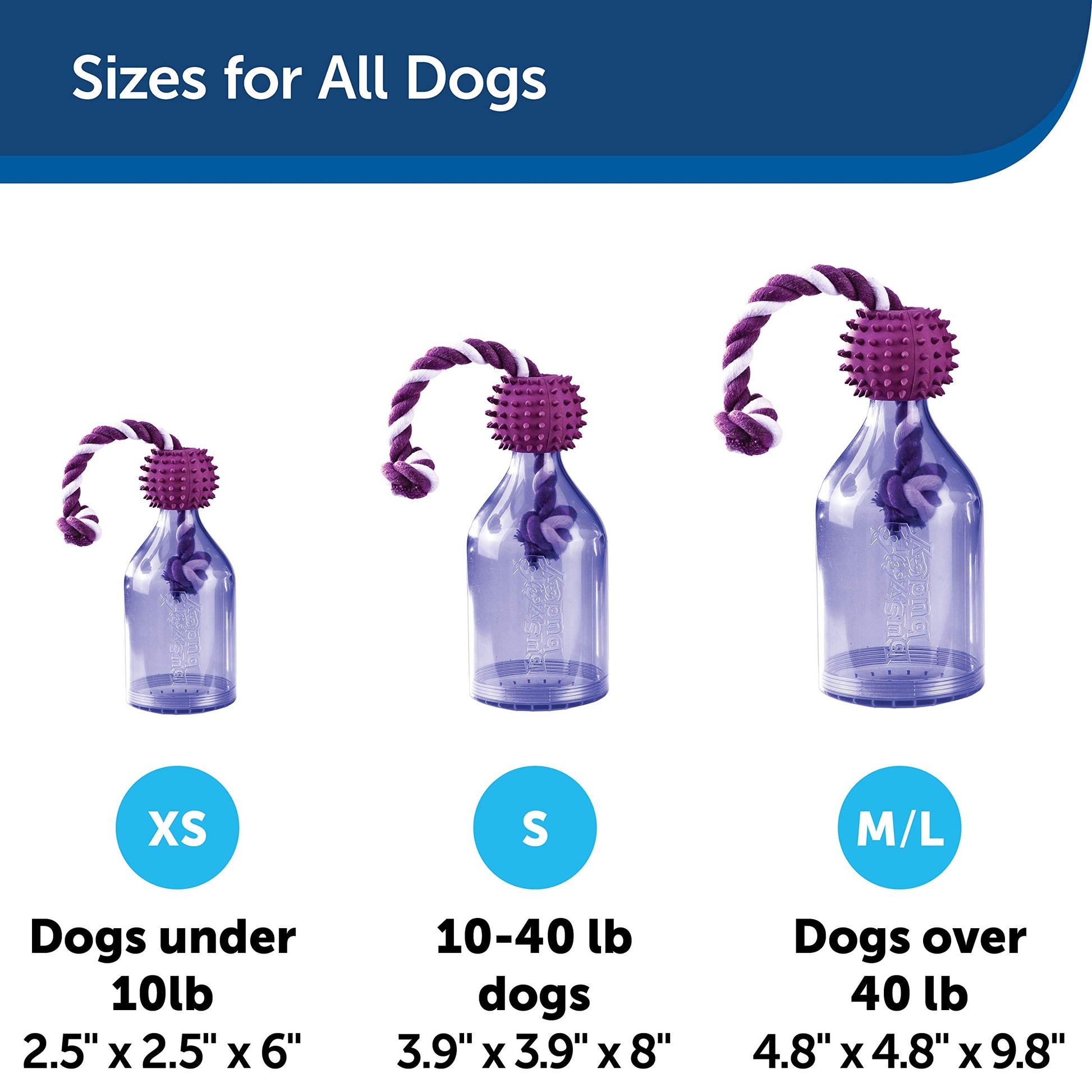 Details: If your pet needs a multi-purpose toy to keep them extra busy, treat them to a PetSafe Busy Buddy Tug-A-Jug. This durable plastic jug randomly dispenses treats and holds up to super strong chewers. The braided rope is great for playing tug-of-war and the jug can double as a slow feeder for pets who eat too fast. Our patented Treat Meter dispenses treats randomly while your dog plays with the toy. Trim the prongs to make treats come out faster. Available in extra small, small and medium/large. Trust PetSafe to help keep your pet healthy, safe and happy.