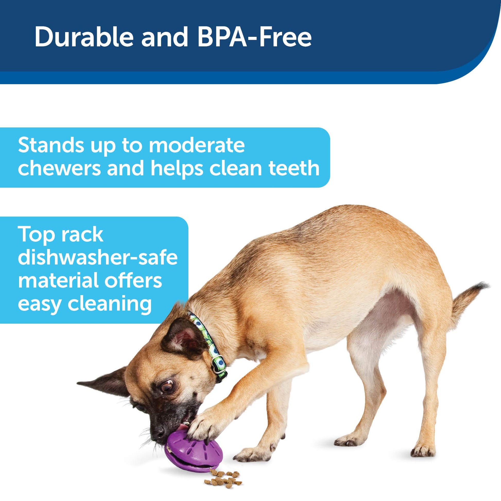 Easy to Clean: This no-mess refillable treat toy is]dishwasher safe and stackable for easy washing and storage; non-toxic toy promotes dental health by cleaning your dog's teeth and gums as they chew