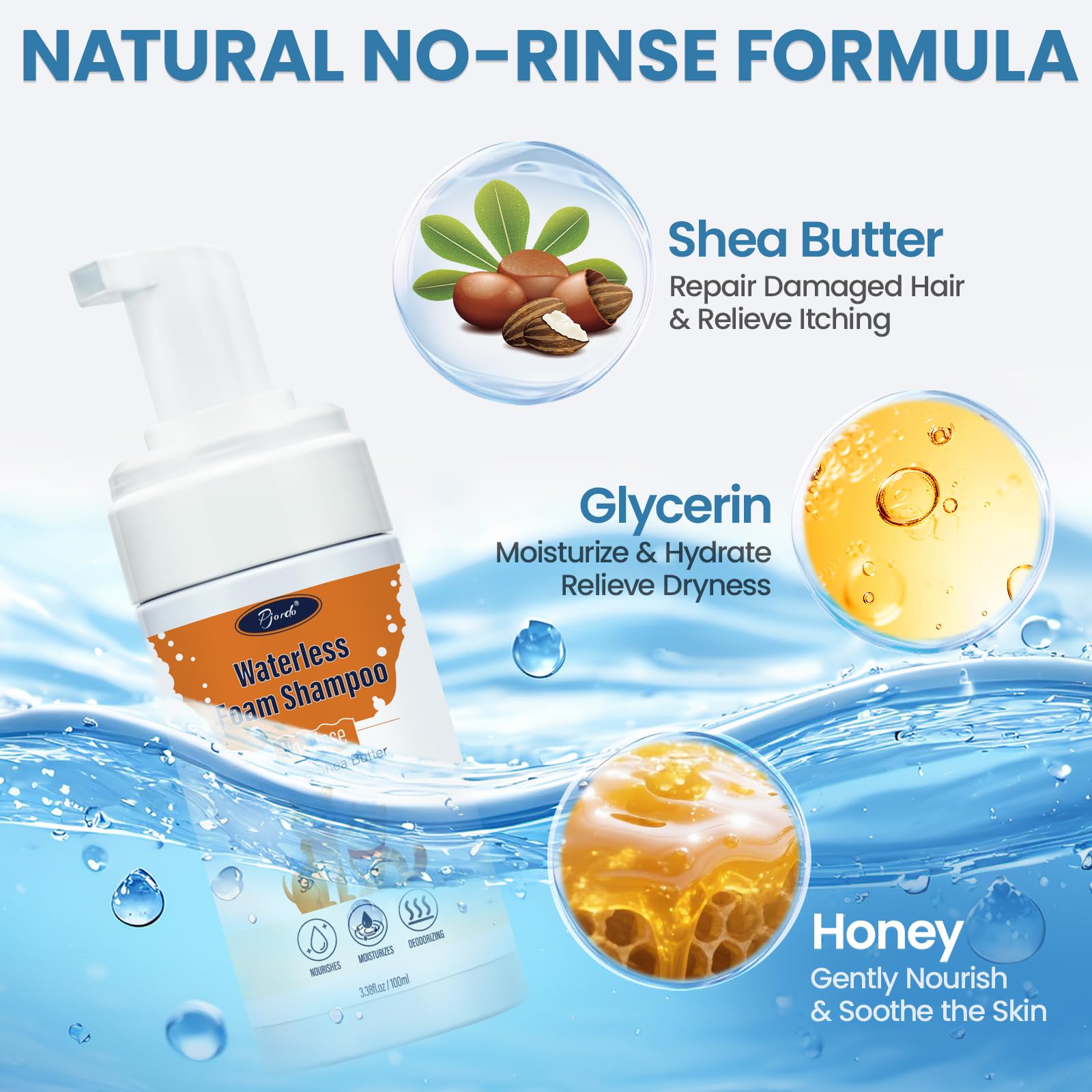 • Gentle & Non-irritating: Our pet waterless shampoo is formulated with natural plant-based ingredients like honey, shea butter, and glycerin. It features a natural honey scent and gentle properties, effectively neutralizing pet odors while relieving dryness and itching. This helps maintain healthy fur and soothes sensitive skin.