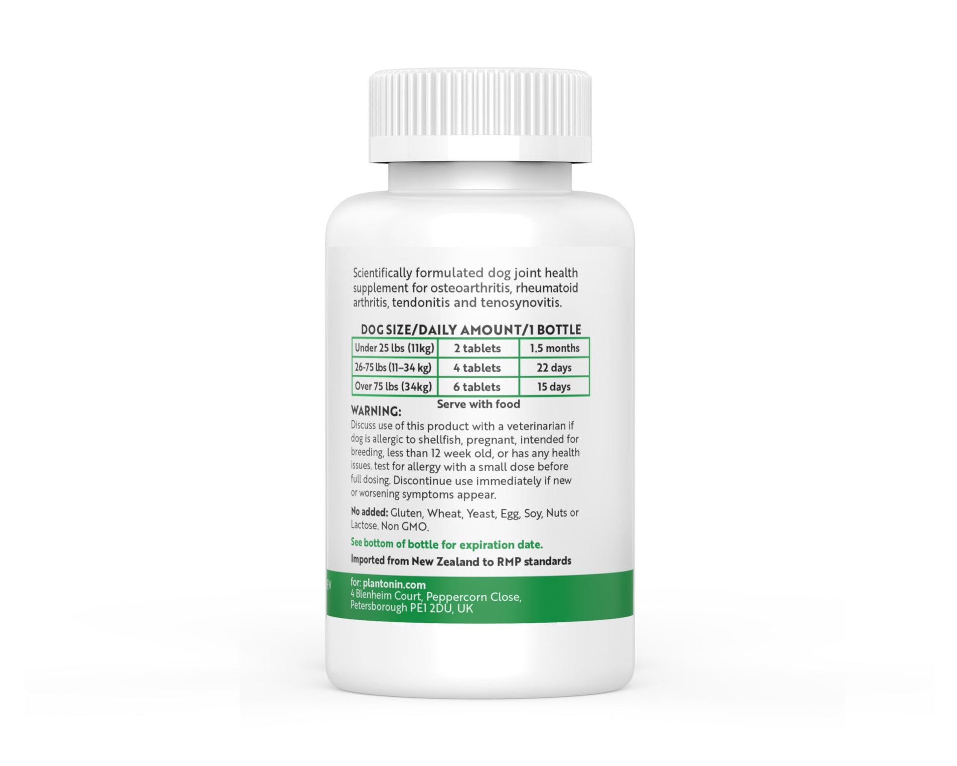 Plantonin Green Lipped Mussel for Dogs – 1325mg High Strength Hip & Joint Supplement for Dogs with Omega-3 – Supports Dog Joint Health, Mobility & Vitality – 90 Dog Joint Supplements Tablets