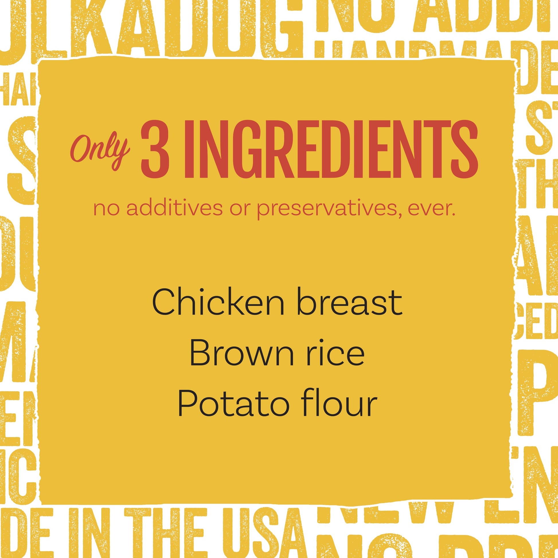 - [All-Natural Chicken Treats for Dogs]: Made with only 3 simple ingredients—fresh chicken from US farms, brown rice, and potato flour—for a clean, high-protein snack.