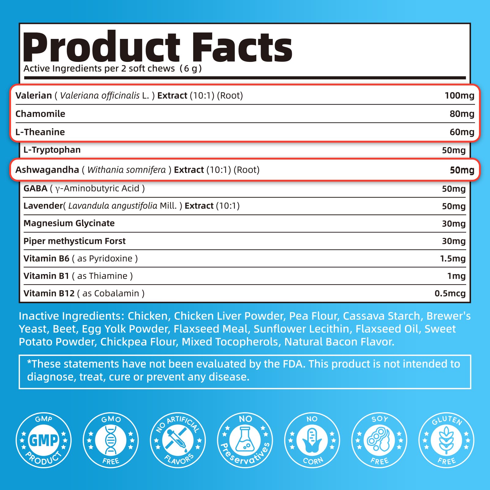 • Calming Treats for Anxious Dogs: For dogs maintain composure during challenging situations. Supports relaxation for separation concerns, vet visits, car rides or noisy environments.