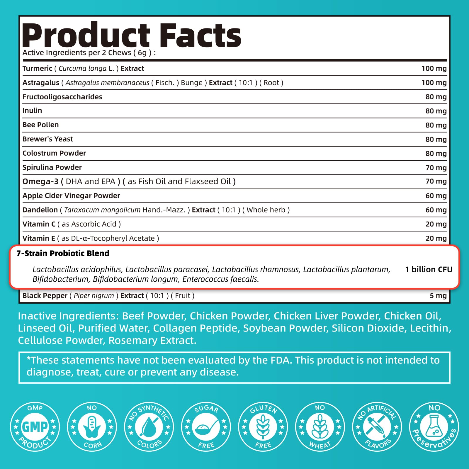 • Quality Products & Exceptional Service: Our dog probiotics chews are proudly made in a GMP-compliant facility. These probiotics for dogs are rich in natural herbal ingredients. Natural and gentle, suitable for daily immune support for dogs of all ages. If you have any questions, please contact us in time, and we will serve you wholeheartedly