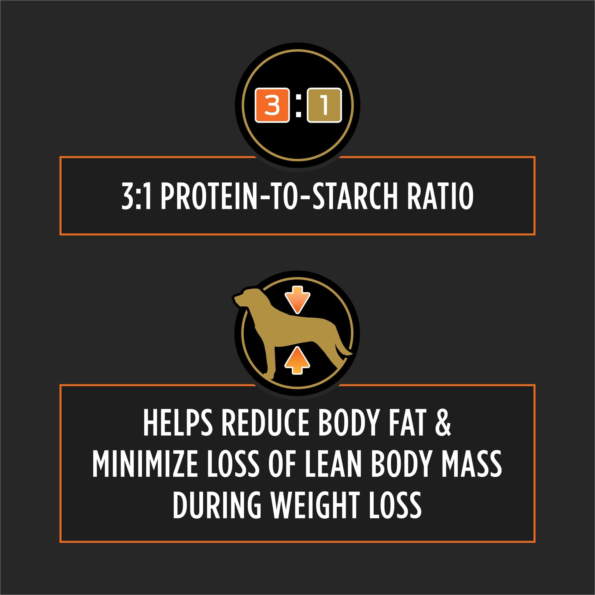 - Purina Pro Plan weight management dog food including high protein to help support lean muscle mass