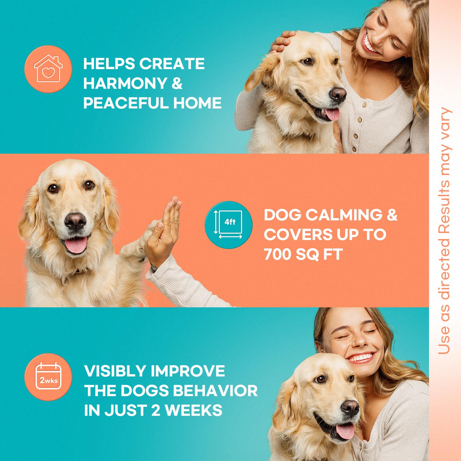 • Reliable Dog Calming Pheromone Diffuser: Discover the transformative effects of our meticulously crafted dog calming pheromone diffuser Kit. Enhanced with the soothing essence of dog calming pheromones, our diffuser fosters tranquility and strengthens bonds among your furry friends. Redefine your home environment with our innovative dog calming solution, promoting comfort and happiness through gentle pheromone embrace.