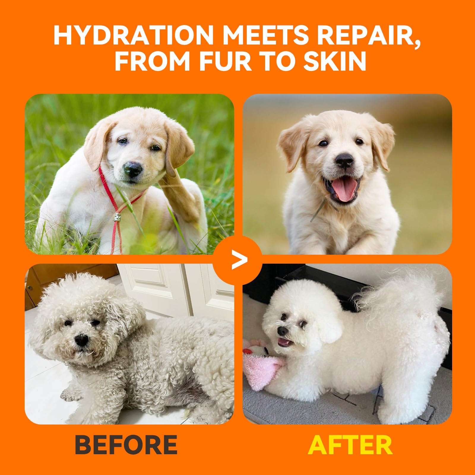 • Gentle Deep Cleansing: Our veterinary formulated dog shampoo is suitable for daily use or provides powerful relief for various skin conditions such as dryness and dull fur, excessive coat loss, excess oil and flaky skin, matting and coarse fur.