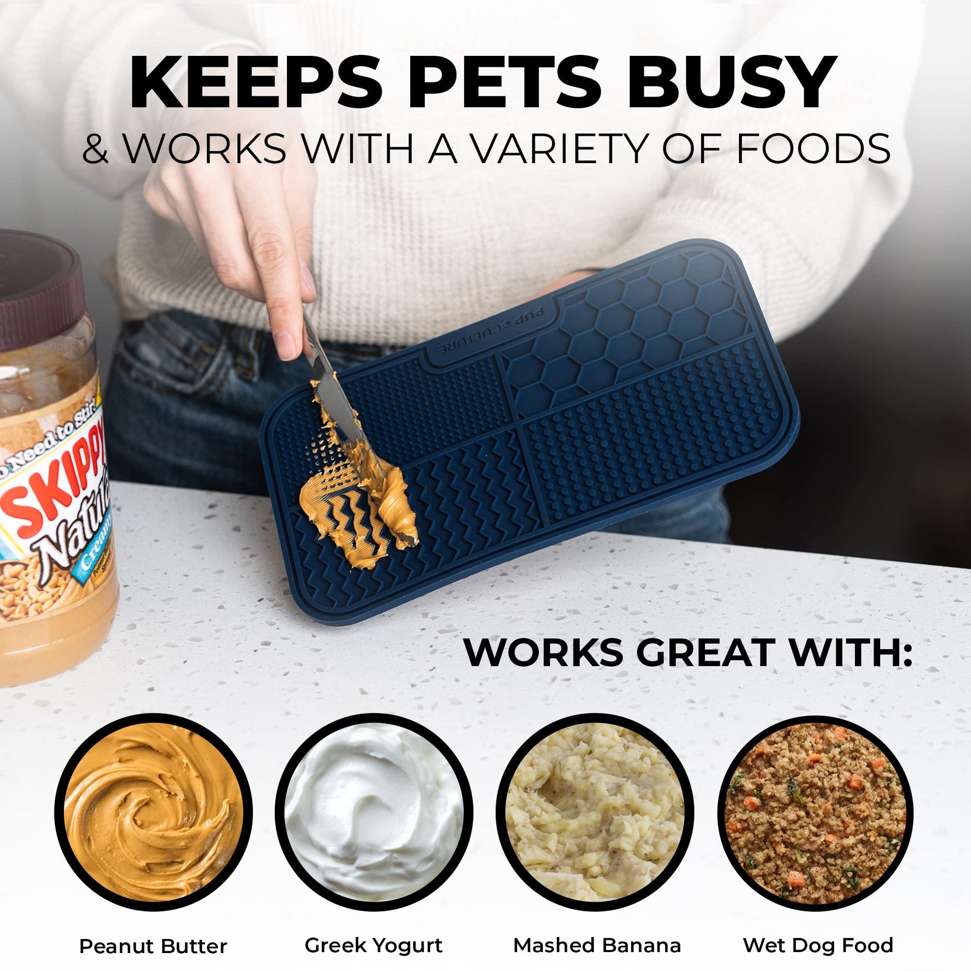 • FOR ALL DOG BREEDS. Pitbull or hound, chihuahua or Dogzilla, the durable Pup Culture mat is bite-resistant for all dog types. Whether your dog needs boredom-relief or food-oriented obedience, every pup deserves the richest experience paw-sible.