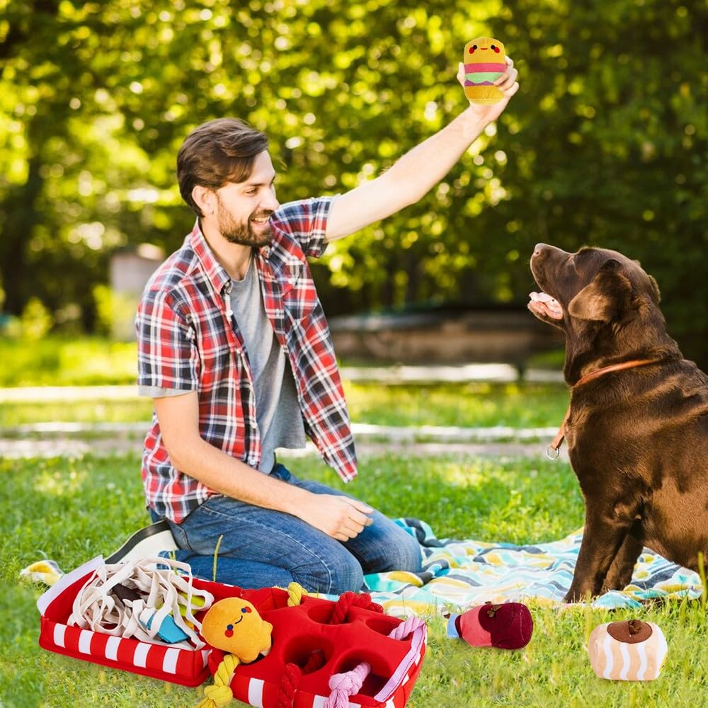 - 🐶【TUG OF WAR ROPE INTERACTIVE DOG TOY】Your puppy is busy exploring and looking for food and toys, will not feel bored and anxious, and develop good eating habits and behaviors. And in addition to sniffing gameplay, dogs can also play tug of war with their dear owners. The rope and noodles are made of cotton material, which helps to clean the teeth when the dog plays.The lunch box dog toy allows the dog to explore alone or interact.