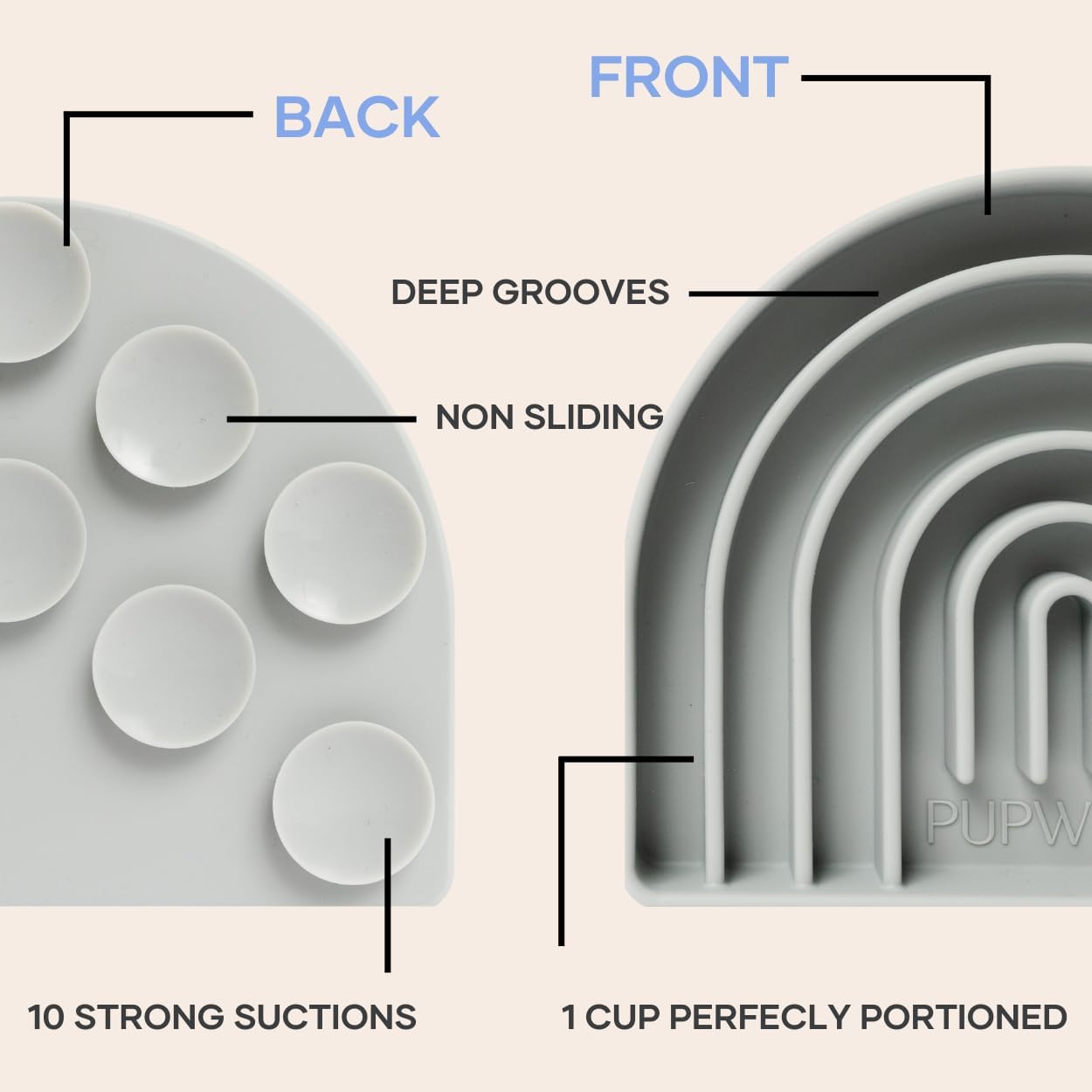 Pupwell Dual-Function Design: The Happy Feelings Lick Mat & Slow Feeder serves a dual purpose, acting both as a stimulating activity mat to keep your dog engaged and as a slow feeder to manage your pet's eating pace, promoting healthier digestion and eating habits.