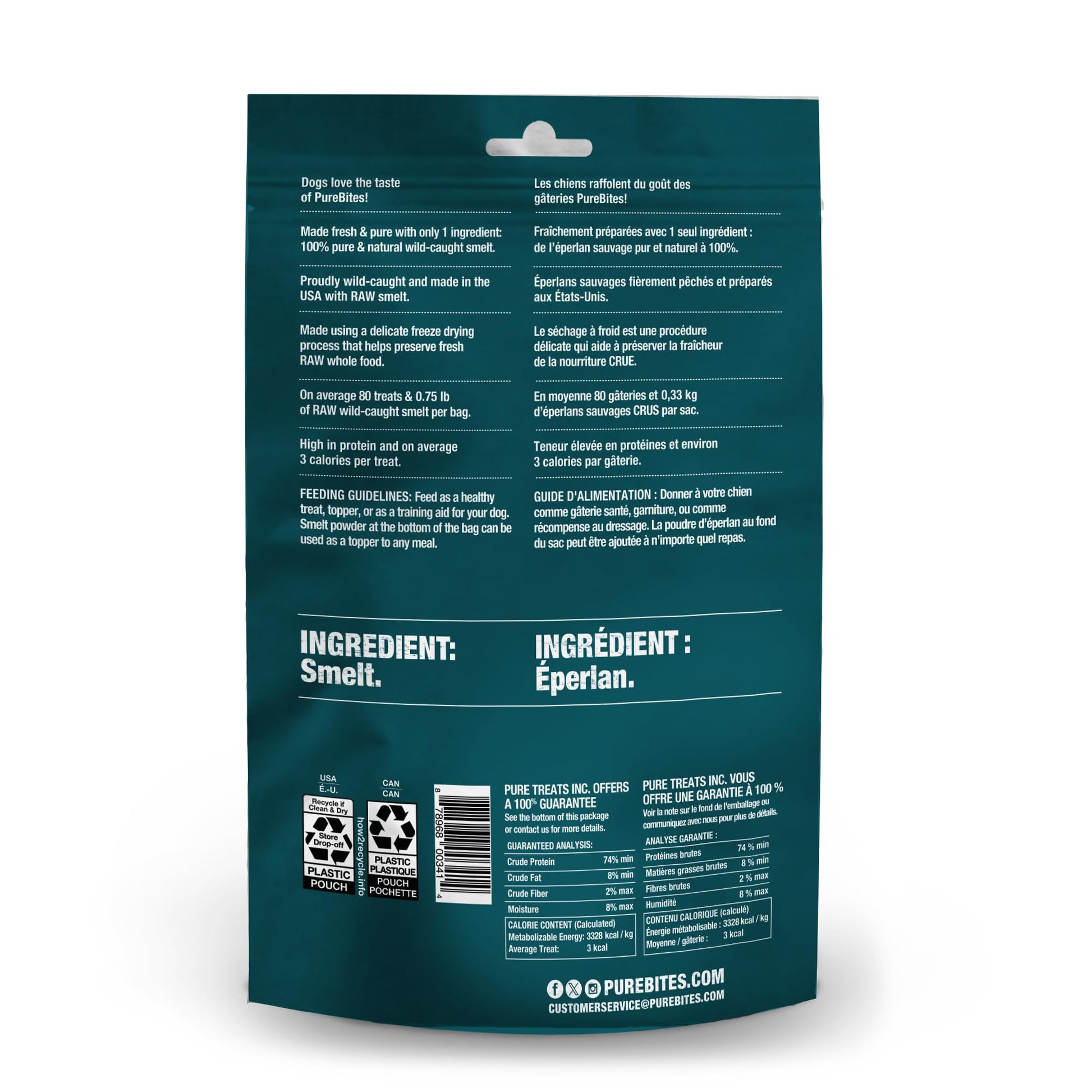 PureBites Wild Smelt Freeze Dried Dog Treats, 1 Ingredient, Made in USA, 2.1oz