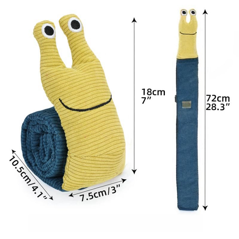 Details: "Looking for a fun and enriching toy to keep your dog entertained indoors? This adorable snail puzzle toy is designed specifically for small and medium-sized dogs who love to sniff, forage, and solve light puzzles. Made from soft corduroy plush with no hard parts or sharp edges, it's a safe and gentle toy perfect for non-aggressive chewers. Unroll the snail’s tail to reveal multiple hidden treat pockets—just tuck in your pup’s favorite kibble or small snacks, roll it up, and watch as they eagerly sniff and paw their way through. The built-in squeaker adds a layer of excitement, encouraging interactive and independent play. Ideal for apartment living or work-from-home environments, this toy offers 15 to 30 minutes of focused fun while reducing anxiety and boredom. Whether you're trying to keep your pup occupied during video calls or just looking for a cute and quiet alternative to noisy chew toys, this snail brings joy and stimulation in one compact package. Machine washable and reusable, it's also an eco-friendly option for daily play. A great gift idea for pet parents, dog birthdays, or new puppies joining the family!"