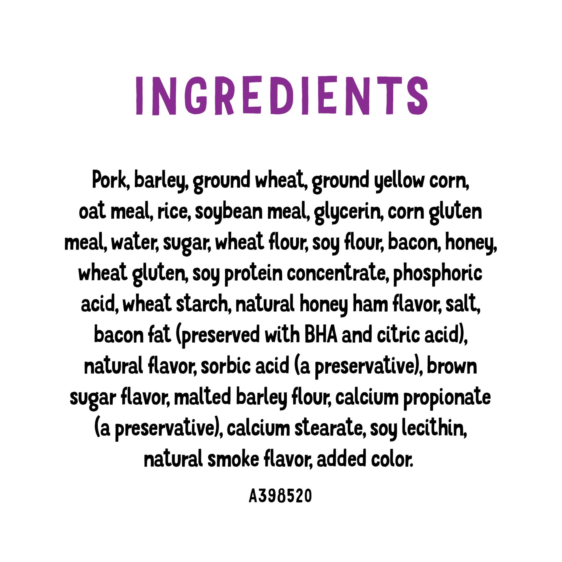 Details: Keep your dog entertained with Purina Beggin' Strips Homestyle' Honey N' Ham Flavor dog treats. The tantalizingly meaty strips made with real honey and bacon will convince your dog he's top notch. Real meat is the number 1 ingredient in these chewy, limited edition pet snacks for dogs. We make our soft dog treats without artificial flavors or FDandC colors, giving your meat-crazed canine the big, bold, bacony flavor he loves. Use these dog chews made with real honey as a special reward for being on his best behavior, or reach for the dog treat pouch when you want to show him just how special he is. We proudly produce our dog treats in USA facilities, so you know exactly where your four-legged family member's Beggin' treats are made. Keep these Honey N' Ham flavor chewy dog treats handy, and keep an eye out for other limited edition flavors all year long so you can show your dog just how special he is to you.