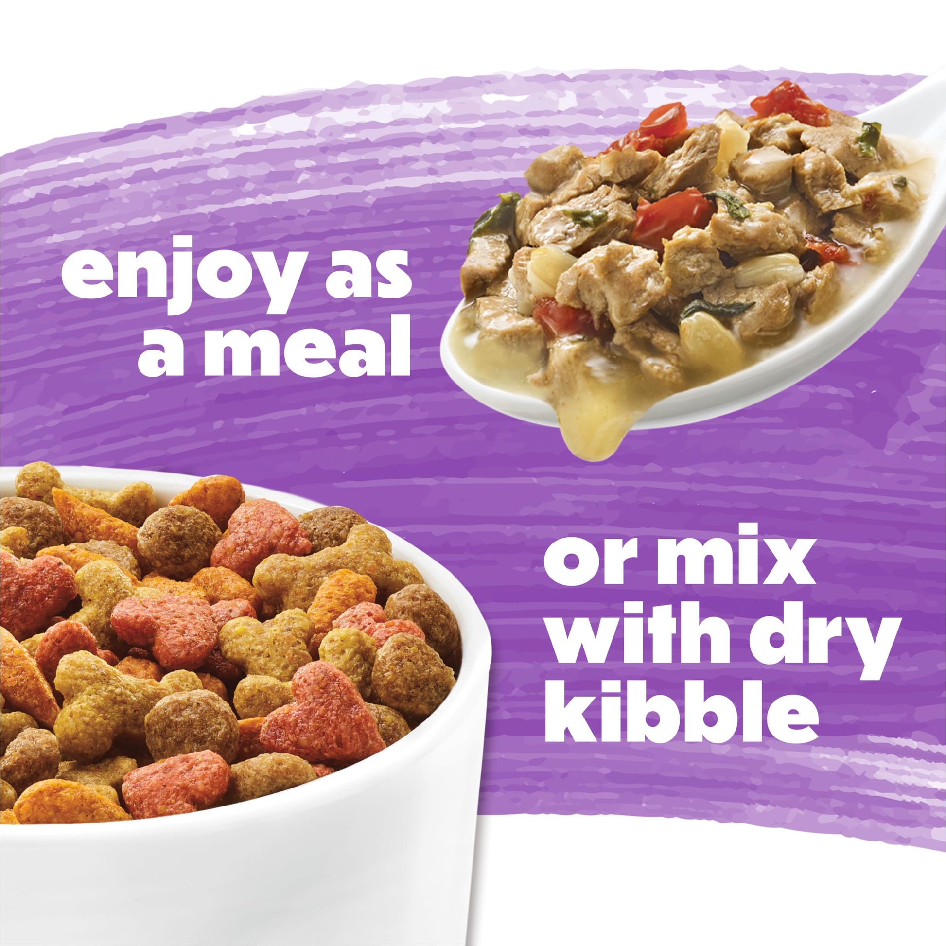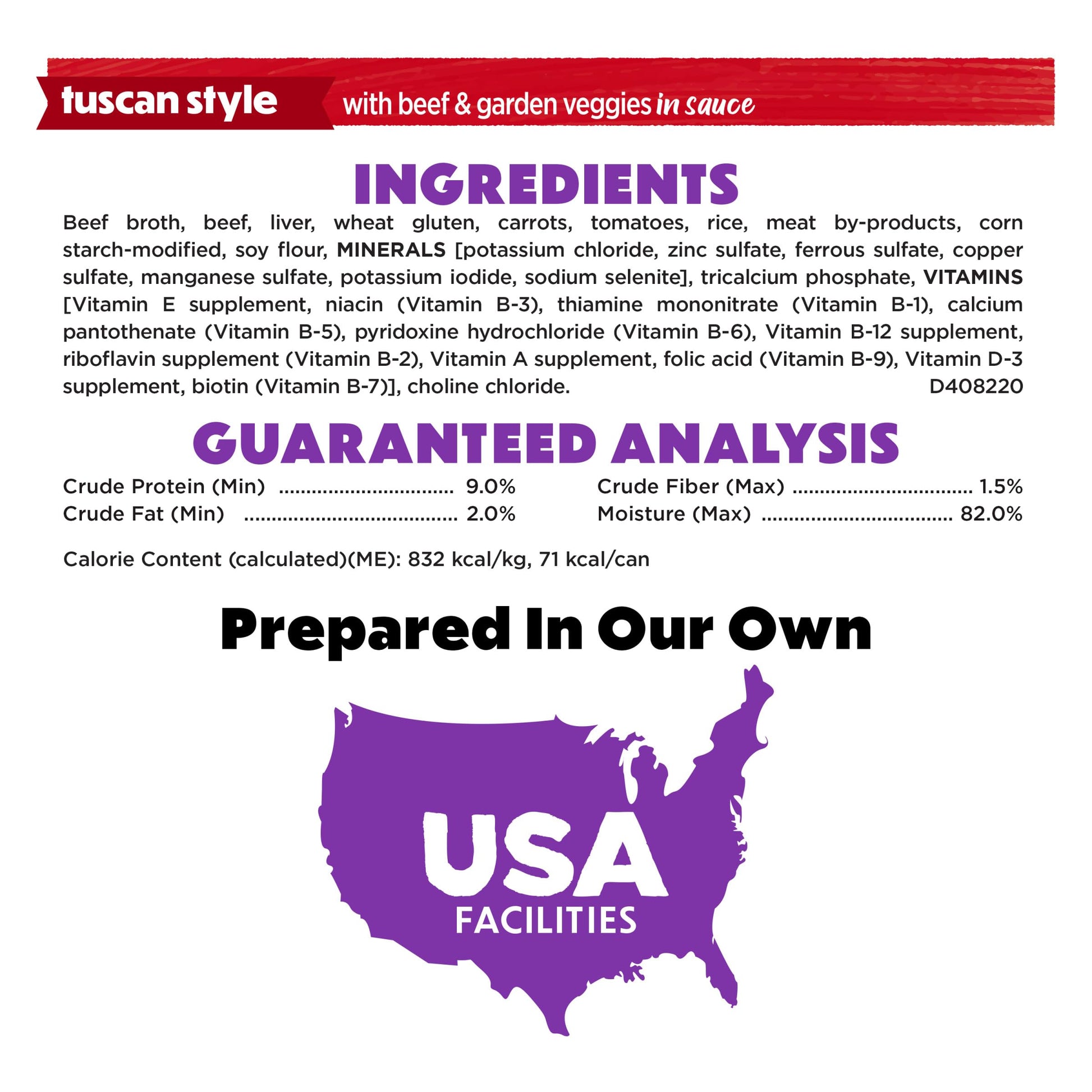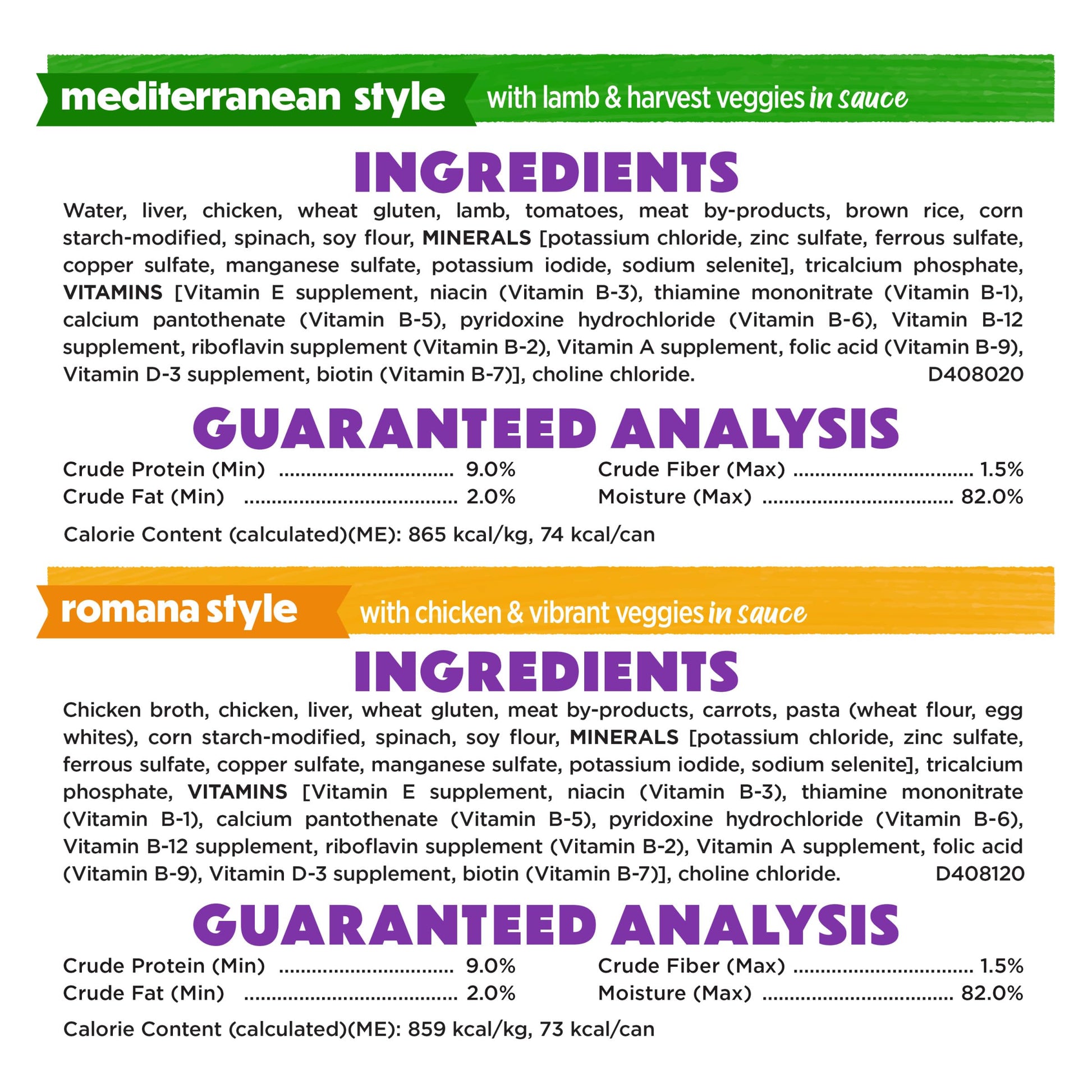 Details: Surprise your dog with a tempting assortment of delicious flavors with a Purina Beneful Medleys adult wet dog food variety pack. This canned dog food variety pack dials up his mealtime excitement with culinary recipes inspired from around the world, including Tuscan, Romana and Mediterranean Style. We blend tender chunks made with real beef, chicken or lamb with high-quality ingredients you can see, such as real carrots, tomatoes and spinach, and whole grains like pasta. Each recipe's flavor and texture is beautifully complemented by generous portions of savory sauce he can dive into. We craft this adult dog food with no artificial colors, flavors or preservatives and add 23 essential vitamins and nutrients to help support his overall health. Our high-protein canned dog food recipes help support his strong muscles and the 100 percent complete and balanced nutrition he needs as an adult dog.